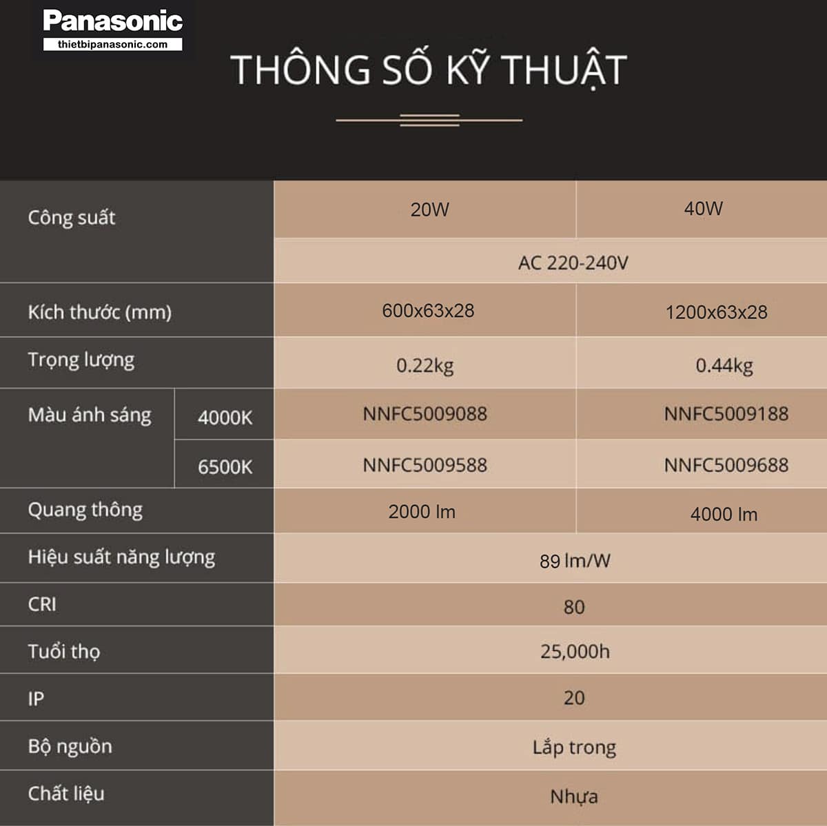 | NFV50102WE1A | 20W | Trung tính | 2000lm | 28x63mm L:600mm |
