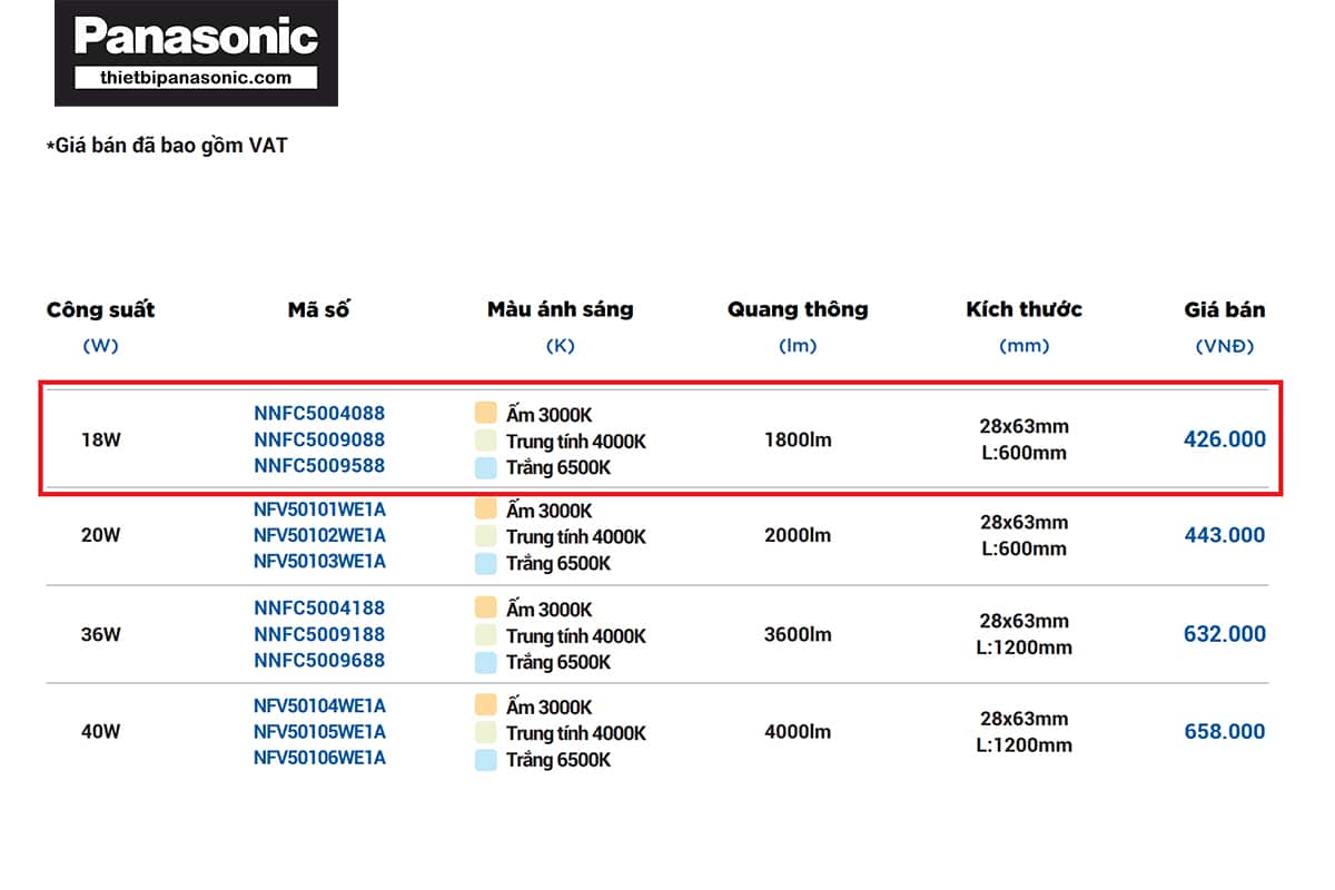 | Bảng giá | Giá đèn LED bán nguyệt, Giá đèn LED bán nguyệt Panasonic, Giá đèn LED Panasonic |