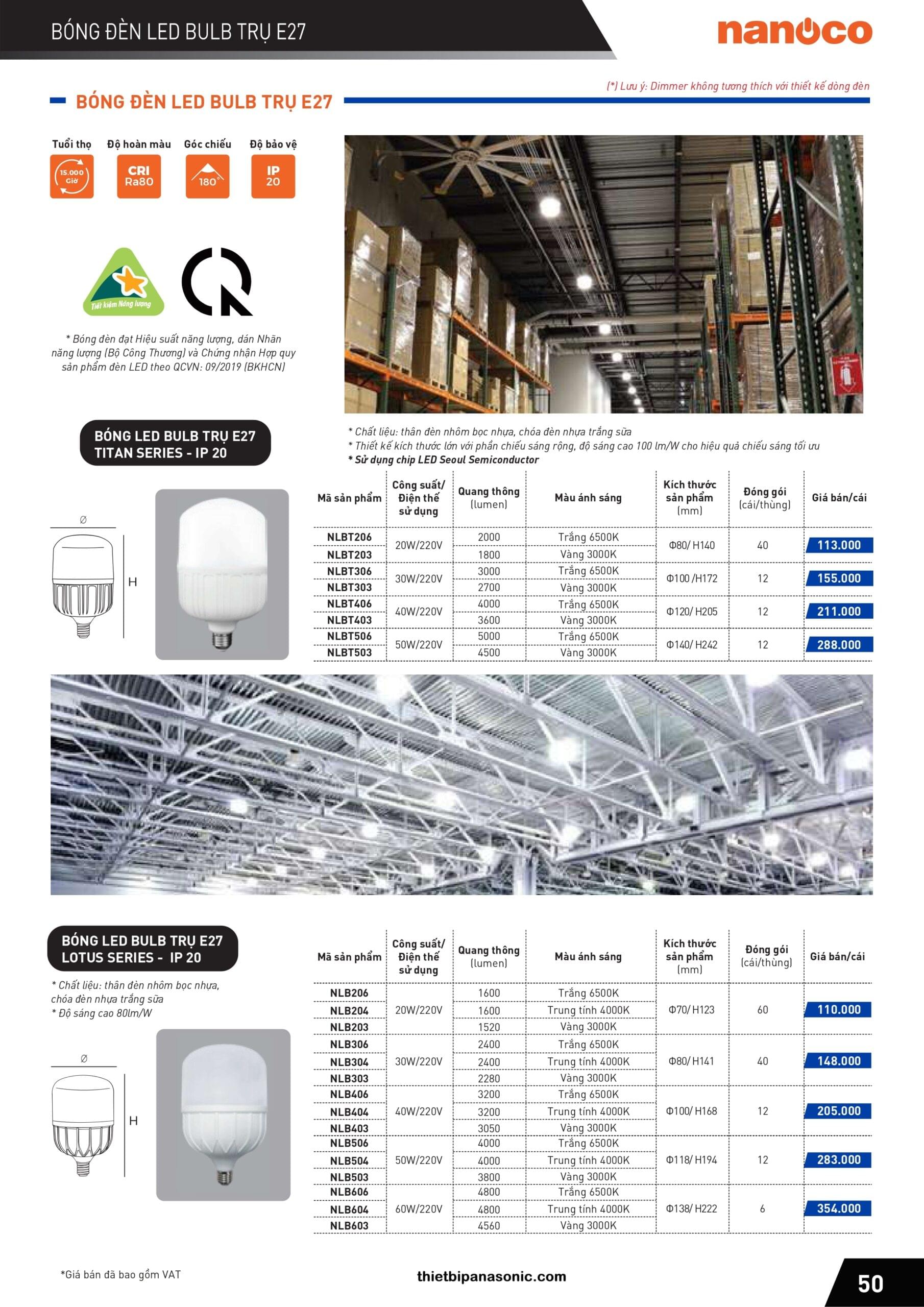 Xem thêm bảng giá đèn LED Nanoco tại đây