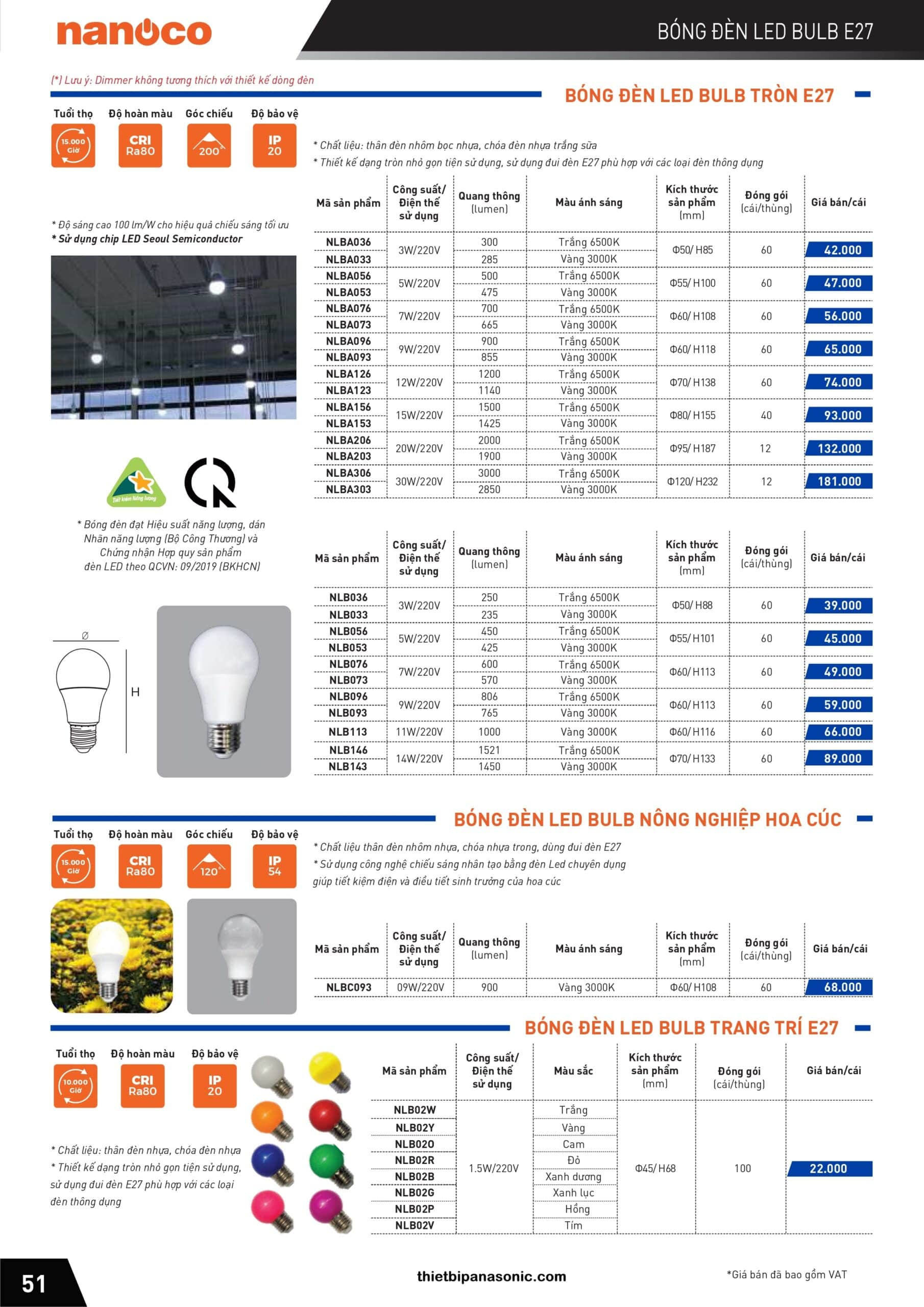 Bảng giá đèn LED Bulb Nanoco mới nhất