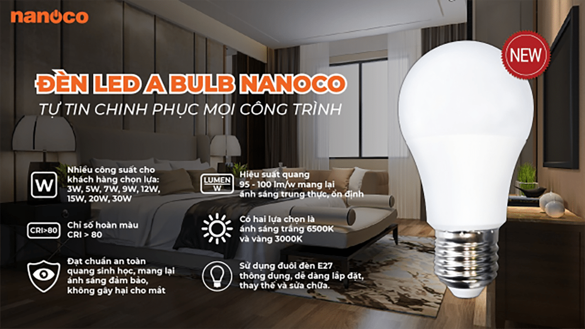 Tổng Kho Panasonic chuyên phân phối các loại bóng đèn LED Bulb Nanoco chính hãng, giá tốt tại TPHCM. Liên hệ ngay để được tư vấn, báo giá tốt nhất nhé!