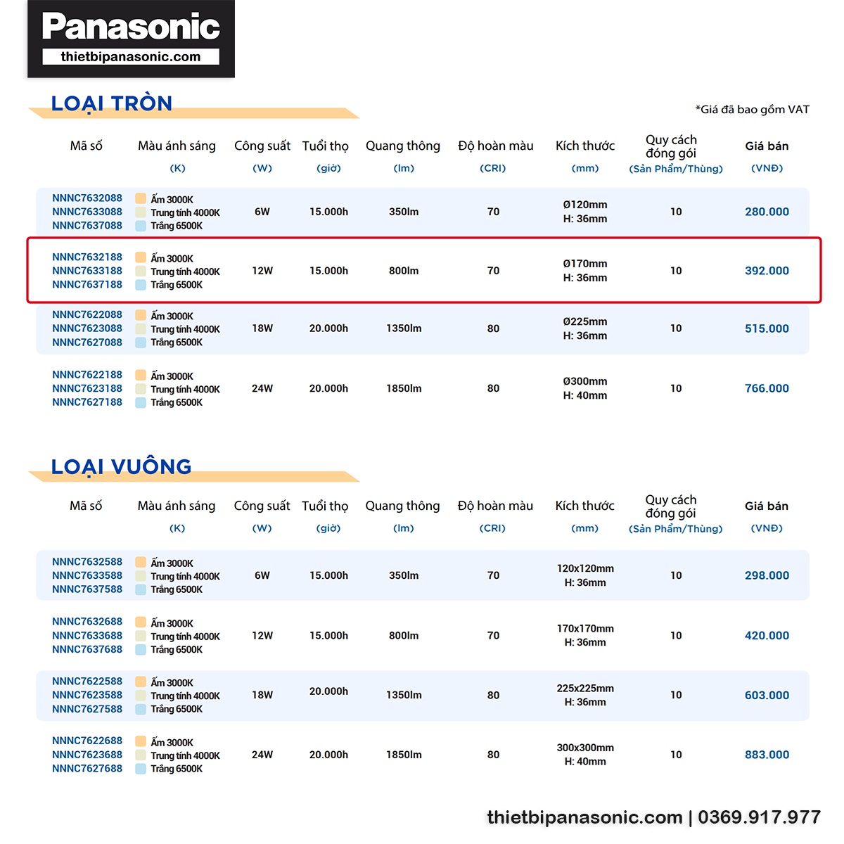 Bảng giá Bảng giá Panasonic 2026, Catalogue Panasonic, Giá đèn LED Panasonic, Giá đèn ốp trần Panasonic