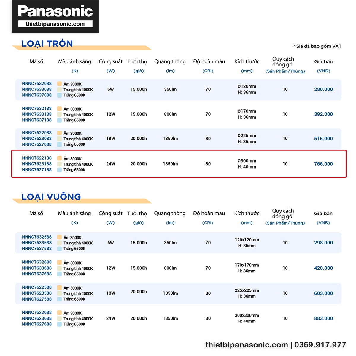 | Bảng giá | Bảng giá Panasonic 2026, Catalogue Panasonic, Giá đèn LED Panasonic, Giá đèn ốp trần Panasonic |