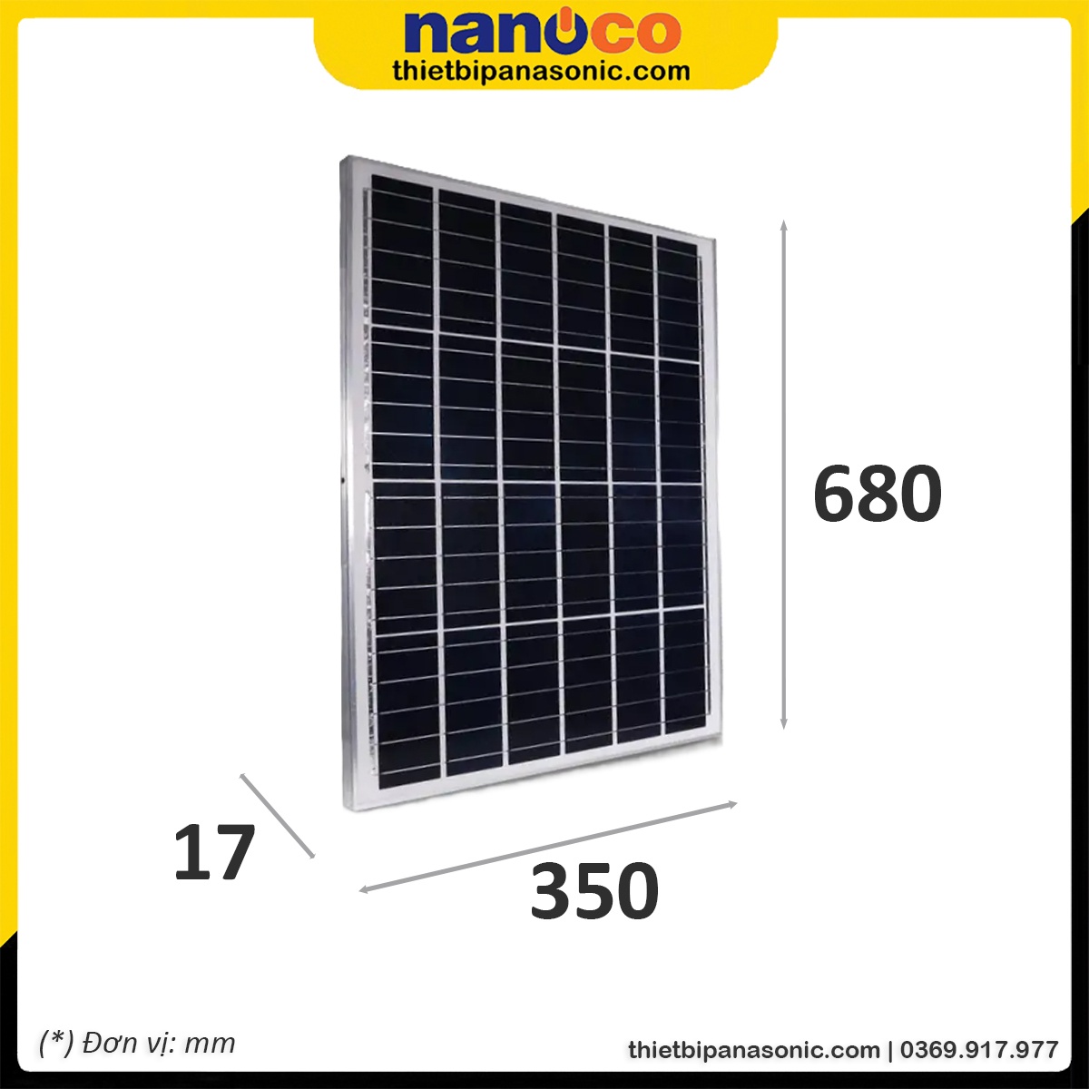 | Kích thước tấm pin | 680 x 350 x 17mm (DxCxS) |