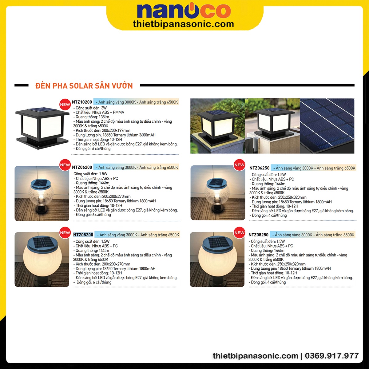 Bảng giá Bảng giá Nanoco, Giá đèn năng lượng mặt trời, Giá đèn năng lượng mặt trời Panasonic