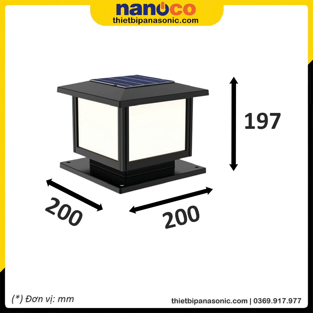 Kích thước Đèn solar sân vườn Nanoco NTZ10200