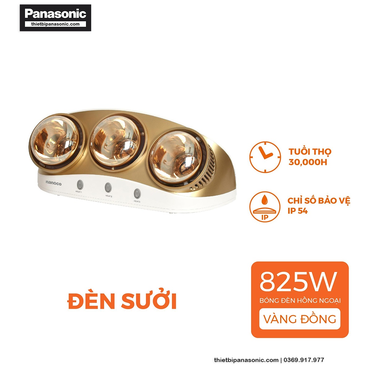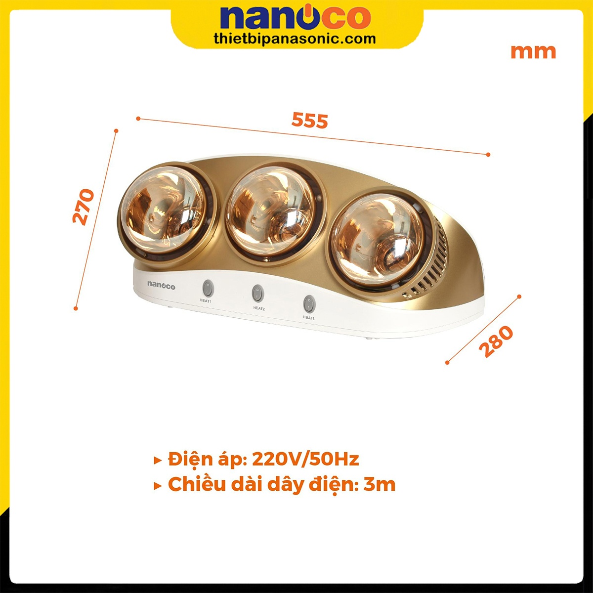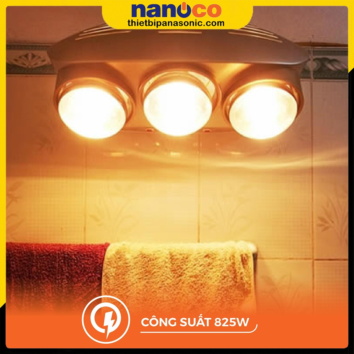 Đèn sưởi Nanoco NBH626G 825W, gắn tường, 3 bóng