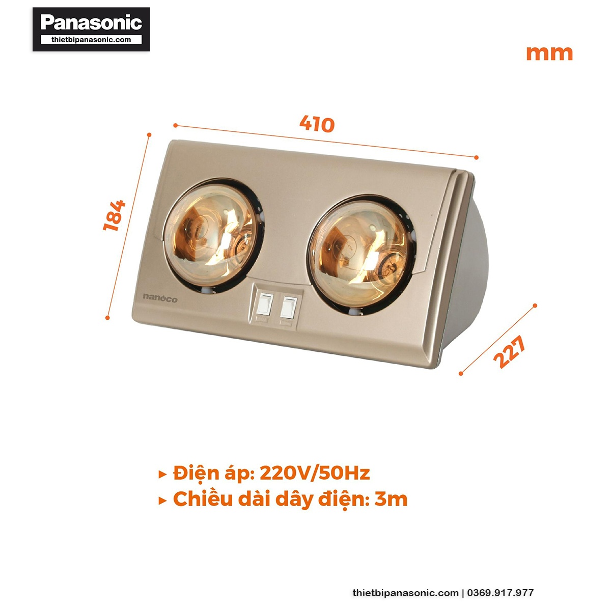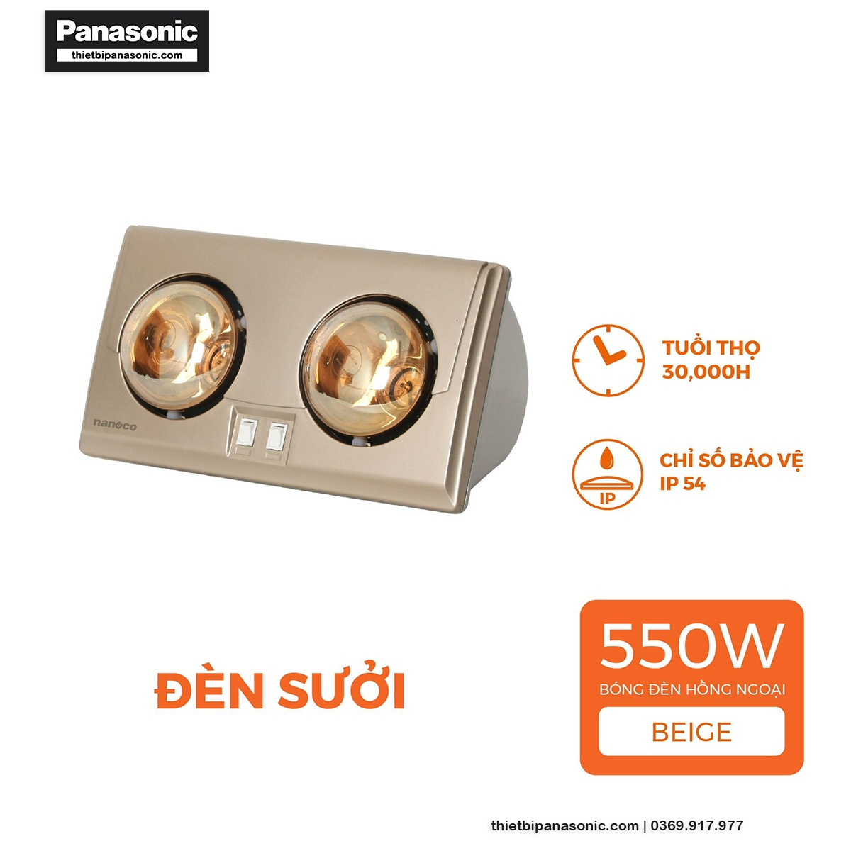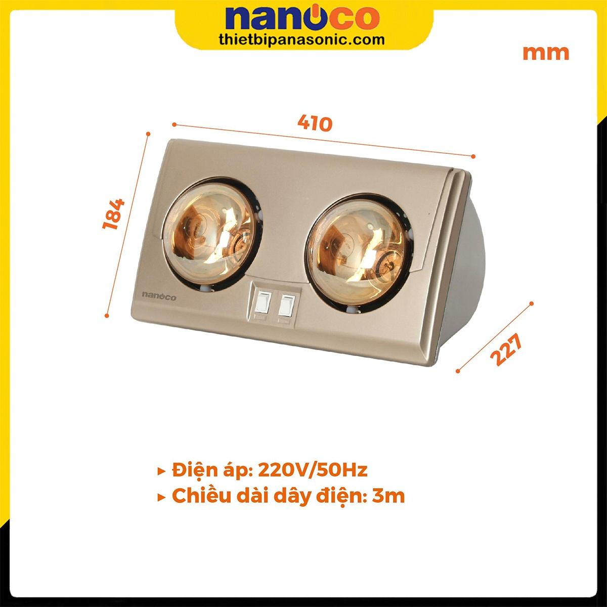 Đèn sưởi Nanoco NBH634BE 550W, gắn tường, 2 bóng