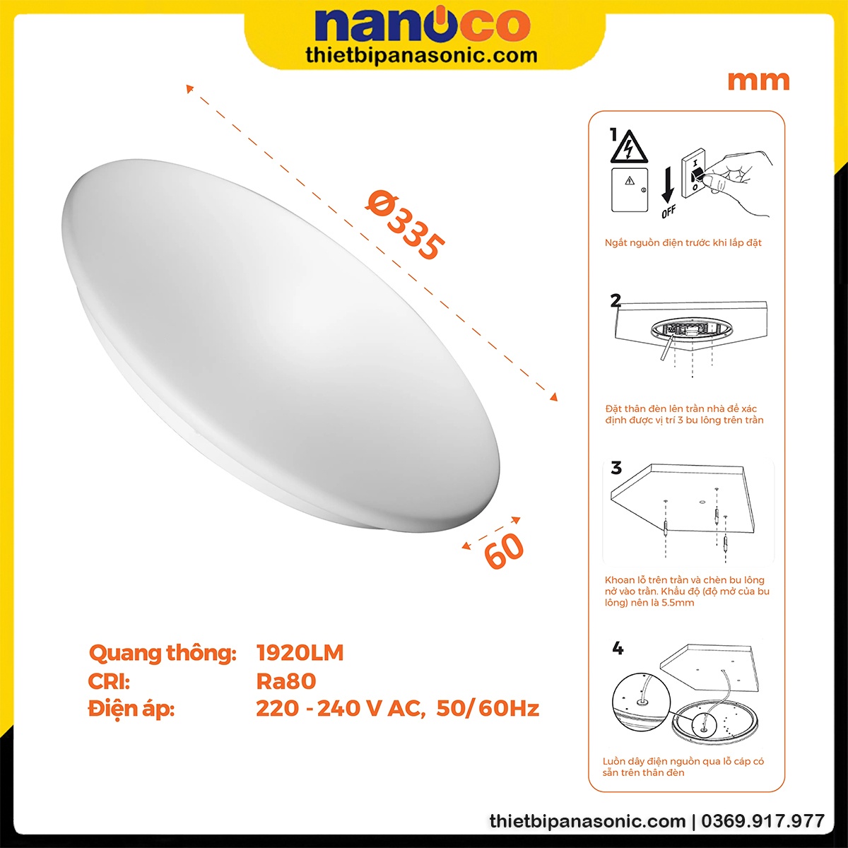 Sản phẩm được sản xuất theo tiêu chuẩn chất lượng cao, đóng gói 6 chiếc/thùng, rất phù hợp cho cả nhu cầu gia đình lẫn dự án. Đặc biệt, chính sách đổi mới 1 đổi 1 với lỗi kỹ thuật của Nanoco chính là lời khẳng định mạnh mẽ về sự uy tín và cam kết từ thương hiệu.