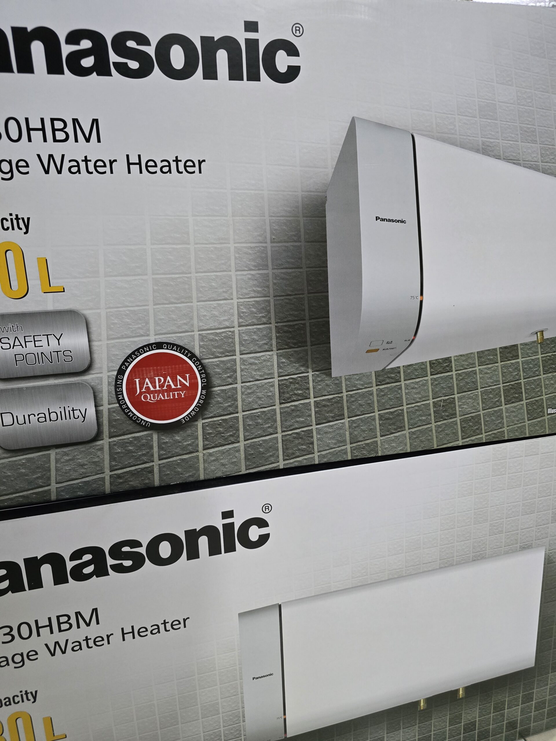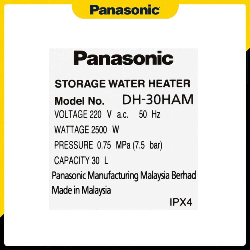 Tem thông số được dán trên thân của Máy nước nóng gián tiếp Panasonic DH-30HBMVW 30L