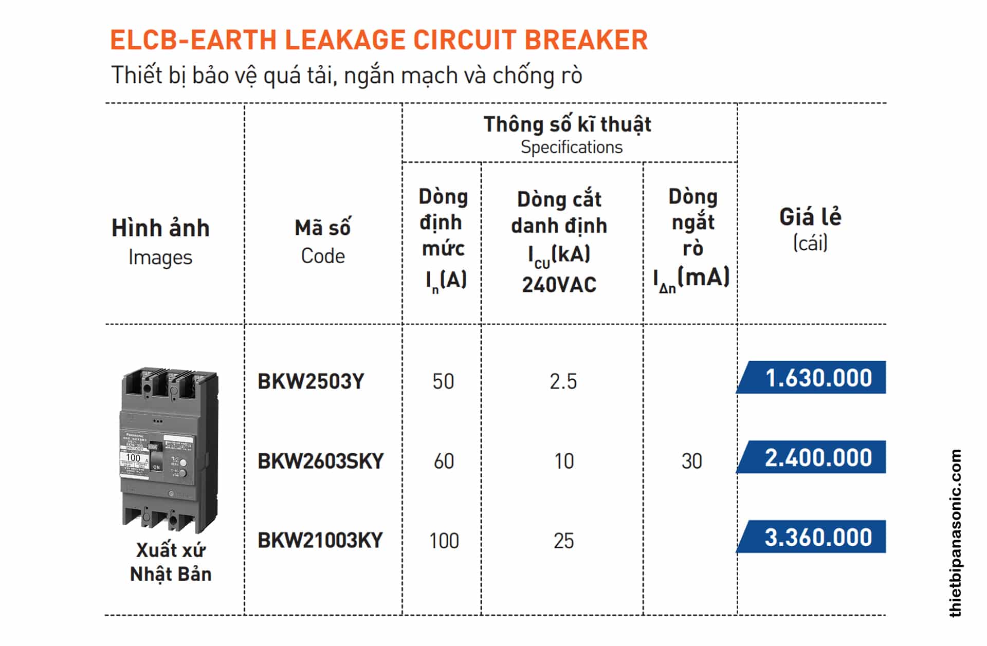 | Loại | Aptomat Panasonic, Cầu dao Panasonic, CB Panasonic, ELCB Panasonic |