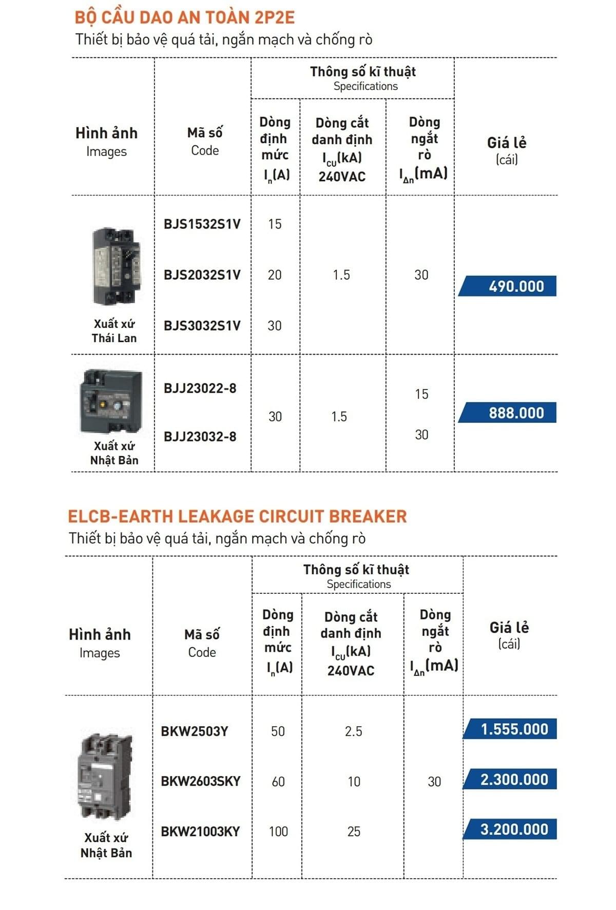 Bảng giá ELCB Panasonic