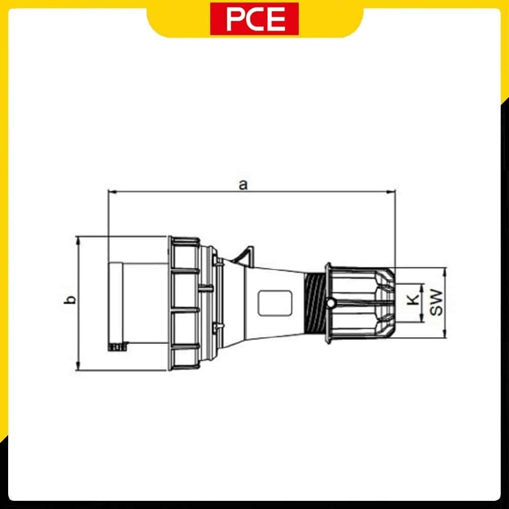 F033-6 – Phích cắm di động kín nước 63A 3P 230V 6H IP67 | PCE