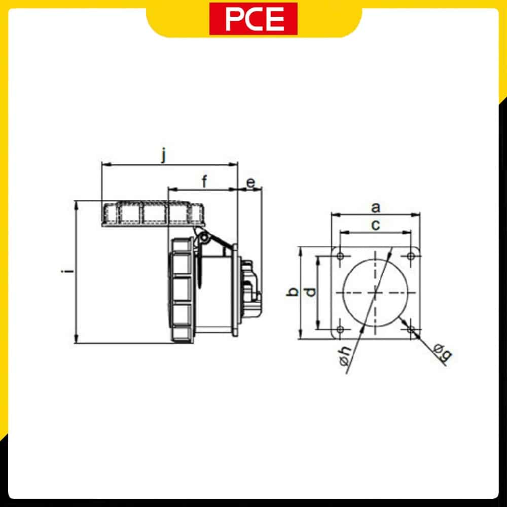 F3252-6 – Ổ cắm gắn âm PCE kín nước dạng thẳng 32A 5P 400V 6H IP67