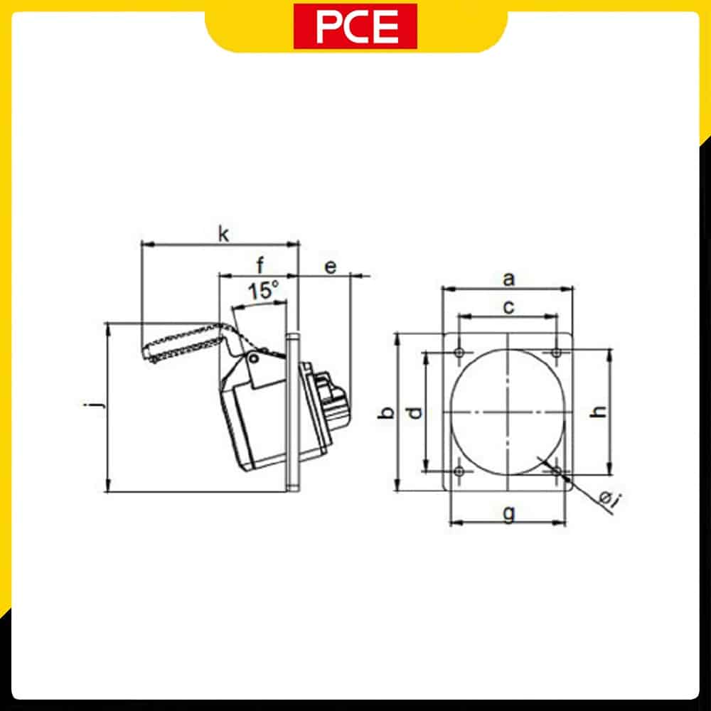 F4232-6F78 – Ổ cắm gắn âm PCE kín nước dạng nghiêng 32A 3P 230V 6H IP67