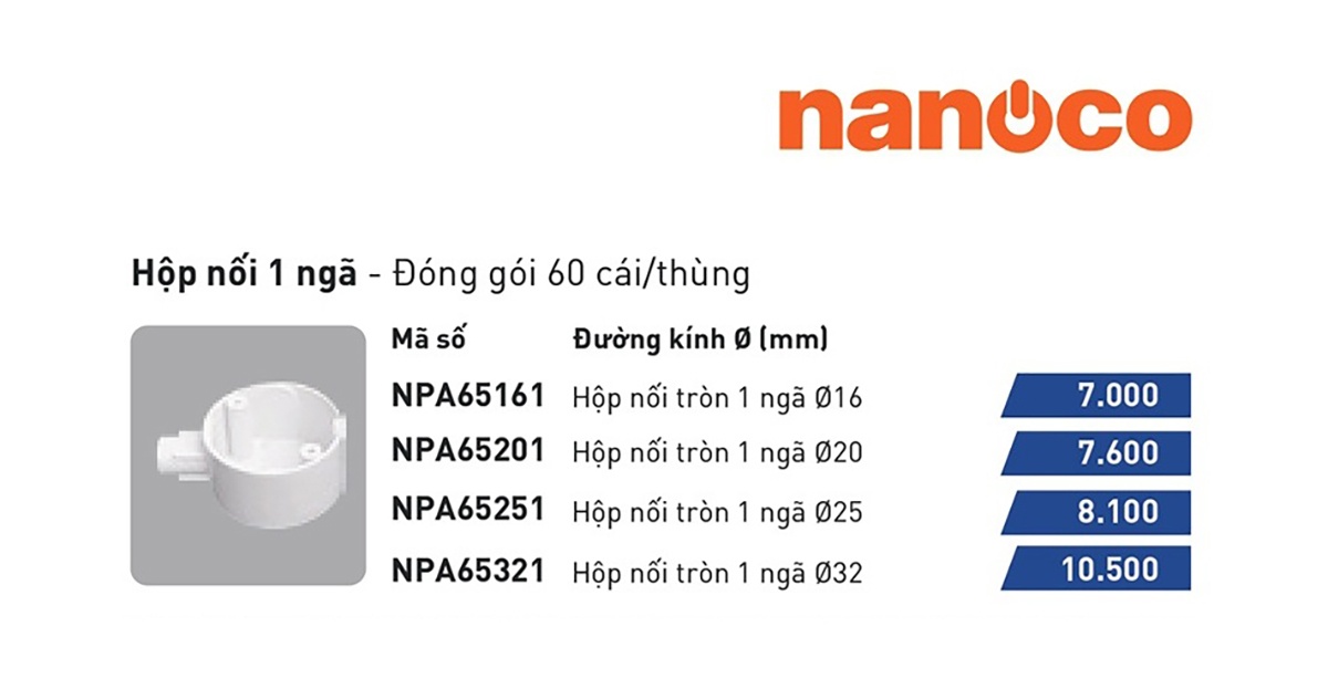 Đèn gương Panasonic, Bếp điện từ Nanoco, Bếp hồng ngoại Nanoco, Bình đun siêu tốc Nanoco, Bình thủy điện Nanoco, Bóng đèn LED Filament Panasonic, Co nối Nanoco, Đầu giảm Nanoco, Đầu nối ống mềm Nanoco, Đầu và khớp nối ren Nanoco, Dây cáp đồng trục Nanoco, Dây cáp mạng CAT5e Nanoco, Dây cáp mạng CAT6 Nanoco, Dây điện thoại và báo cháy Nanoco, Đèn bắt muỗi Nanoco, Đèn gắn tường Nanoco, Đèn LED bán nguyệt Nanoco, Đèn LED dây Nanoco, Đèn LED dây Panasonic, Đèn LED khẩn cấp Nanoco, Đèn LED Linear, Đèn LED Panel Nanoco, Đèn Pin đội đầu Nanoco, Đèn thoát hiểm Exit Nanoco, Đèn tuýp LED Nanoco, Hộp âm Hộp nổi Nanoco, Hộp nối 1 ngã Nanoco, Hộp nối 2 ngã Nanoco, Hộp nối 3 ngã Nanoco, Hộp nối 4 ngã Nanoco, Hộp nối dây Nanoco, Kẹp đỡ ống luồn dây điện chữ C Nanoco, Kẹp ống Omega Nanoco, Khớp nối trơn PVC Nanoco, Lò xo uốn ống Nanoco, Mặt thiết bị Nanoco, Máy hút ẩm Nanoco, Máy sưởi dầu Nanoco, Nắp đậy hộp nối tròn Nanoco, Nẹp luồn dây điện vuông Nanoco, Nồi chảo Nanoco, Ổ cắm Phích cắm đơn Nanoco, Ống luồn dây điện tròn Nanoco, Ống ruột gà HDPE Nanoco, Ống ruột gà luồn dây điện xoắn PVC Nanoco, Phụ kiện dùng cho HB Nanoco, Quạt hút sưởi Nanoco, T nối ống luồn dây điện điện Nanoco, Tủ sấy quần áo Nanoco