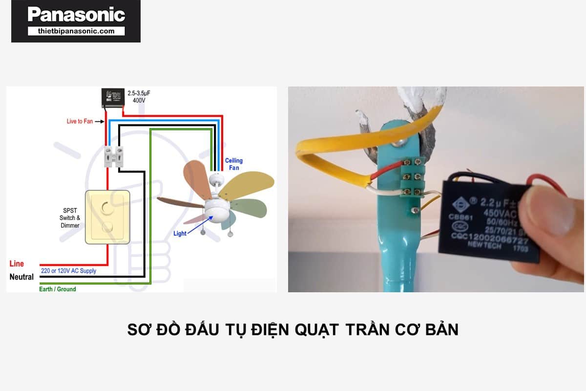 Sơ đồ đấu tụ điện quạt trần cơ bản
