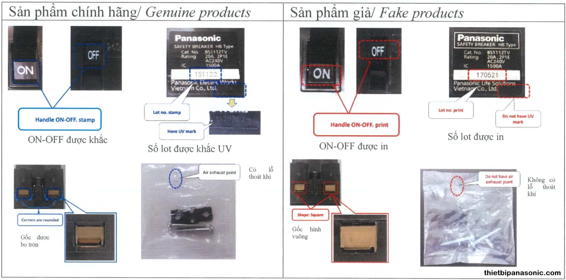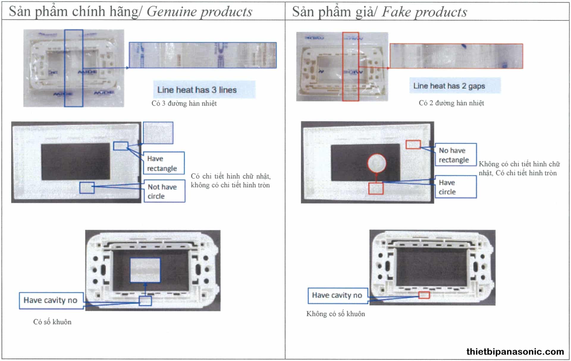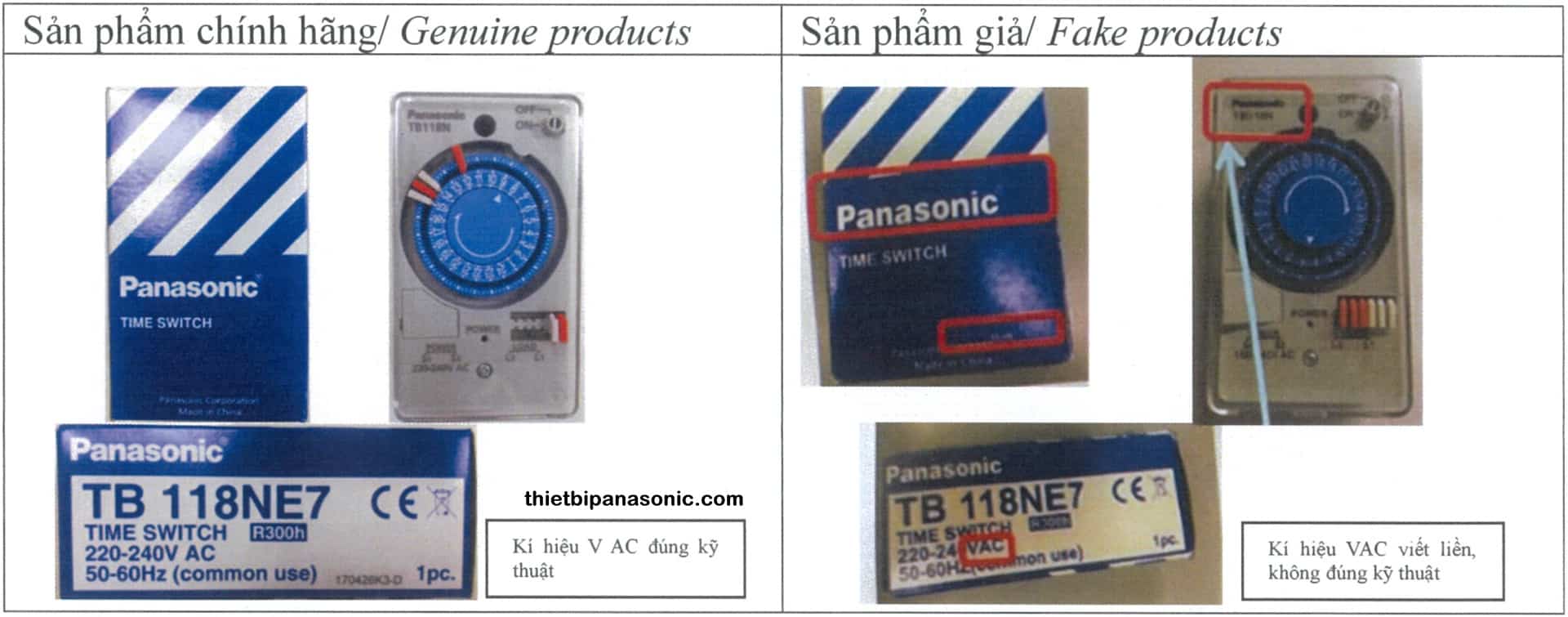Bạn thể nhận biết sản phẩm giả thông qua logo Panasonic in trên mặt sản phẩm, Logo của chúng tôi được in sắc nét và tuân theo tiêu chuẩn của tập đoàn Panasonic.