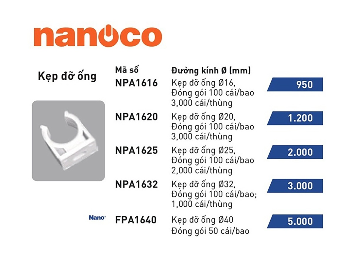 Kẹp đỡ ống luồn dây điện chữ C Nanoco
