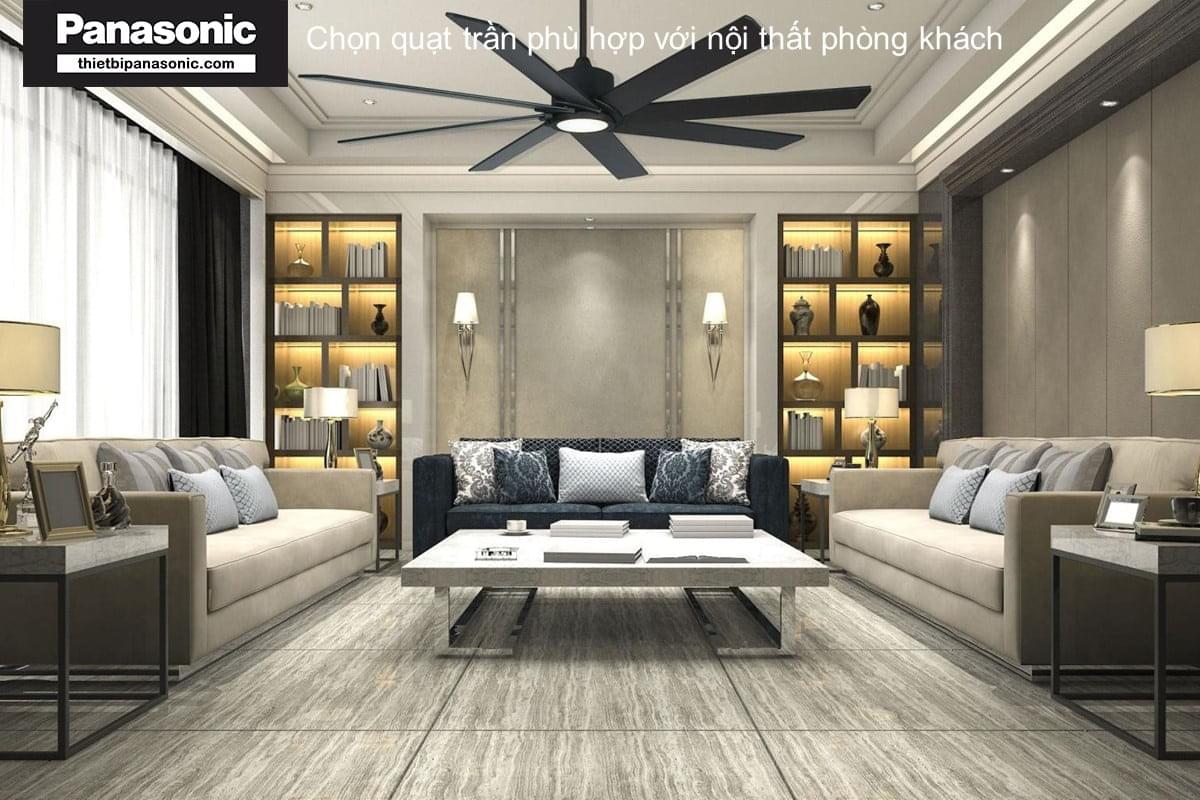 Để chọn được quạt trần phù hợp với phòng khách cần phải thiết kế với phong cách phù hợp tối giản, trong trường hợp này bạn có thể chọn cho mình mẫu quạt trần có 3 – 4 cánh kèm đèn LED đơn giản. Bên cạnh đó, chất liệu để làm cánh quạt bạn cần chọn cho mình loại phù hợp với phòng khách hiện đại với chất liệu như nhựa, kim loại hay sợi thủy tinh PPG.
