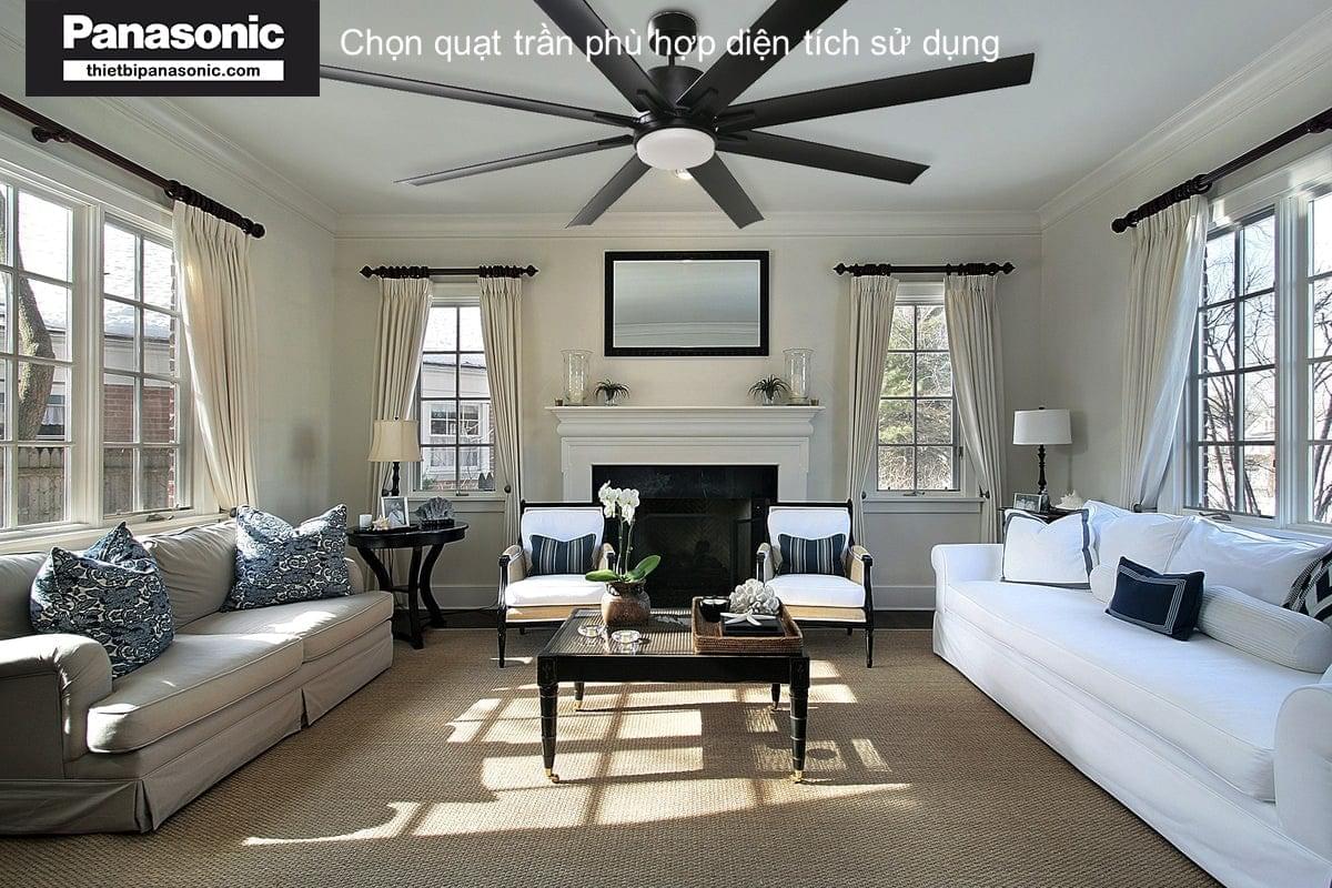 Tiếp theo là lưu ý khi chọn mẫu quạt trần đó là tìm phòng có diện tích phòng khách phù hợp để đảm bảo làm mát cho căn phòng hiệu quả. Khoảng cách từ sàn nhà tới cánh quạt tốt nhất nên trong khoảng 2,5 – 2,7 mét bạn không nên để quá 4 mét, nhằm tạo độ an toàn cũng như làm mát hiệu quả nhất có thể.