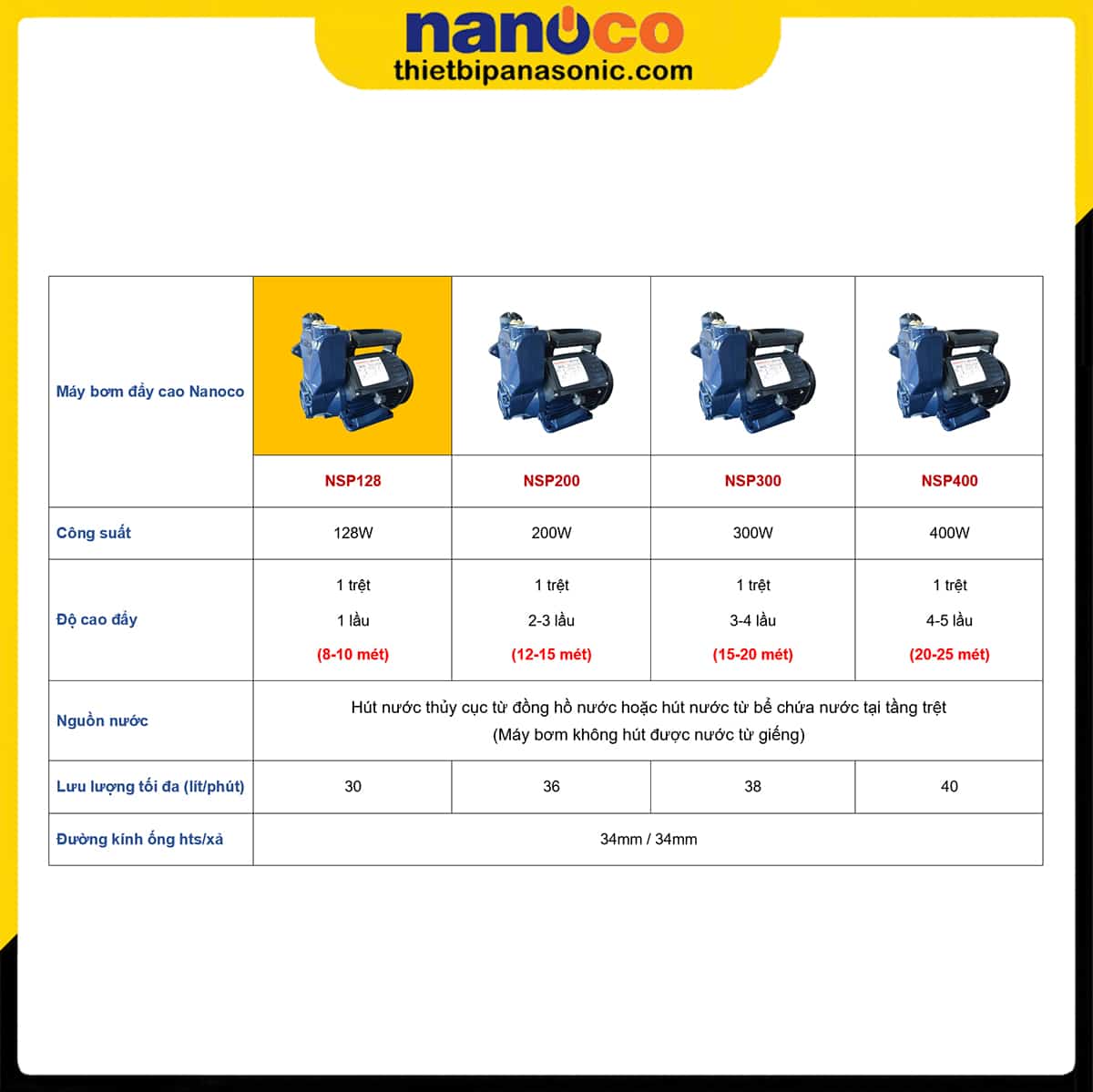 So sánh Máy bơm đẩy cao Nanoco NSP128 với các loại bơm đẩy cao Nanoco khác