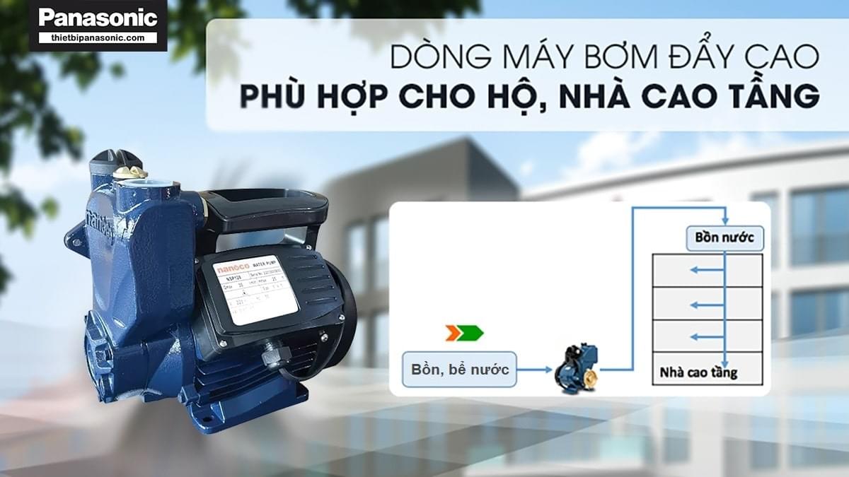 | Loại máy bơm | Bơm đẩy cao, Máy bơm đẩy cao, Máy bơm đẩy cao Nanoco, Máy bơm đẩy cao Panasonic |