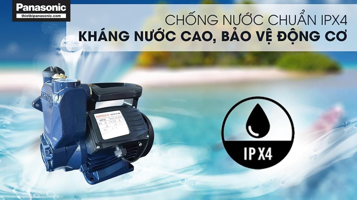 Ngoài ra, máy bơm đẩy cao Nanoco NSP128 còn được thiết kế chống nước chuẩn IPX4, giúp ngăn chặn việc máy bị hỏng khi sử dụng ở môi trường ẩm ướt. Dây điện dài 1.8m kèm phích cắm cũng giúp cho việc lắp đặt và sử dụng máy bơm đơn giản và thuận tiện hơn.