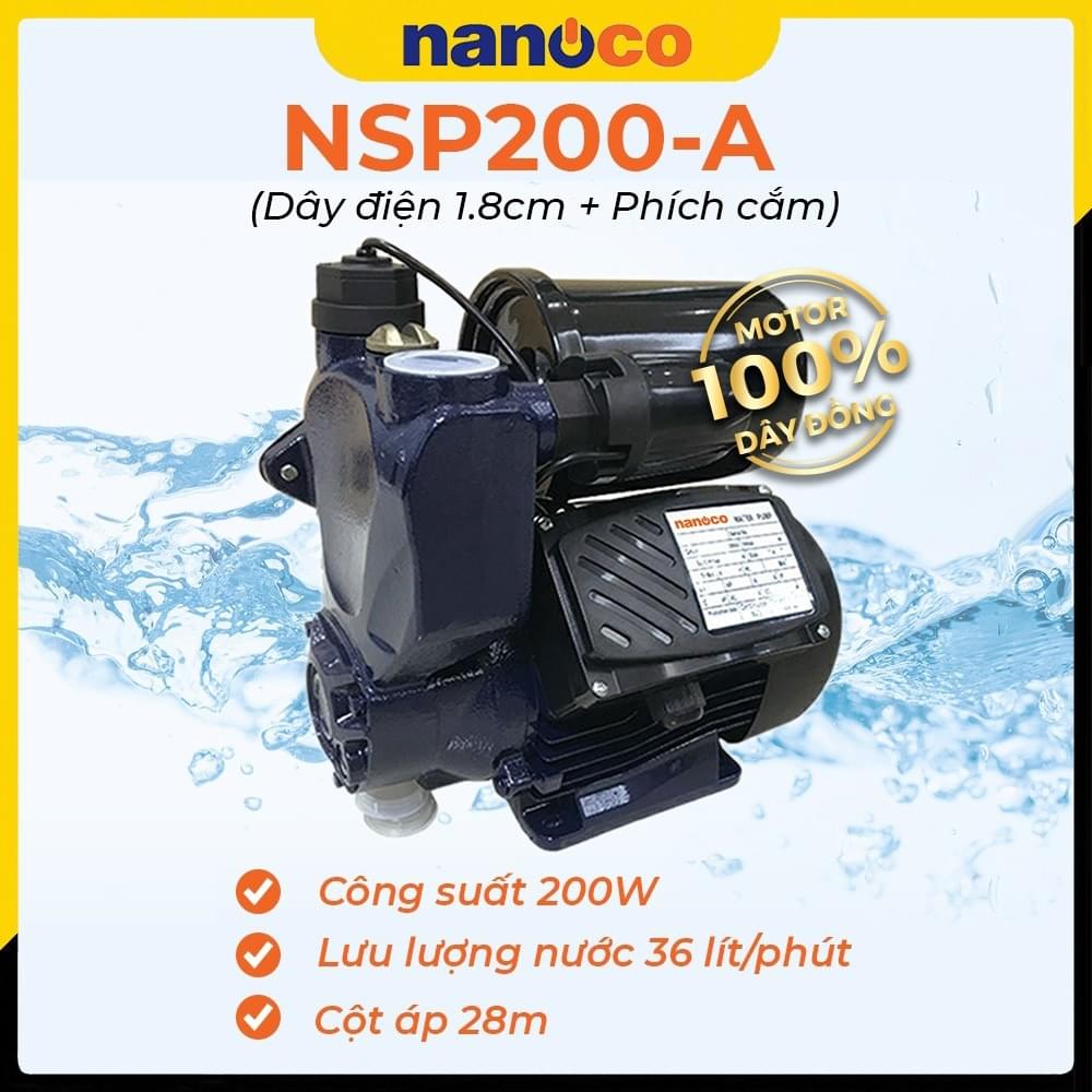 Máy bơm tăng áp Nanoco 200W NCPS200-A hoạt động với công suất 200W cho động cơ hút đẩy hiệu quả. Thiết bị có khả năng đẩy nước đến những vị trí trên cao tối đa 28m và hút nước ở bể chứa sâu đến 8m. Giúp dòng chảy lưu thông ổn định, rút ngắn tối đa thời gian bơm.