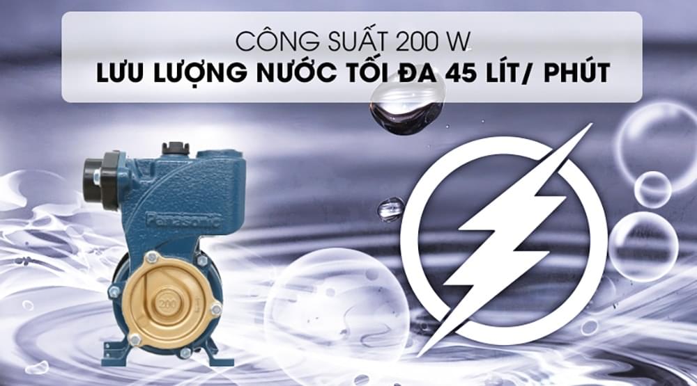 Máy bơm Panasonic GP-200JXK có công suất tối đa là 200W cho ra lưu lượng nước lên đến 45 lít/phút