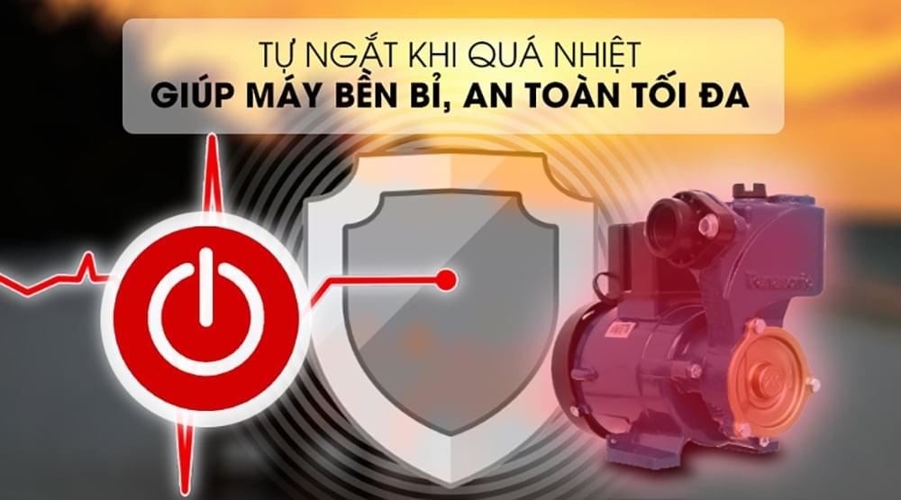 Máy bơm đẩy cao Panasonic 200W có khả năng Tự ngắt khi quá tải giúp bảo vệ an toàn cho người sử dụng