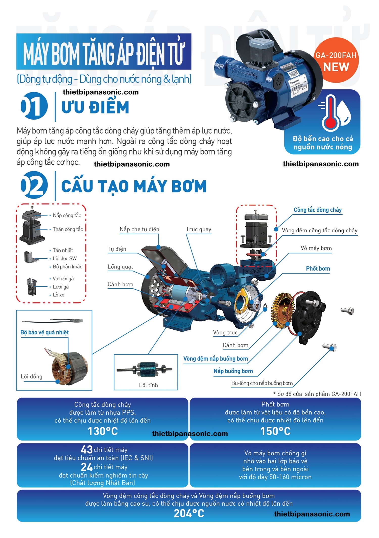 Bơm tăng áp Panasonic GA-200FAH được trang bị bộ bảo vệ quá nhiệt (130°C) tăng cường khả năng chống cháy
