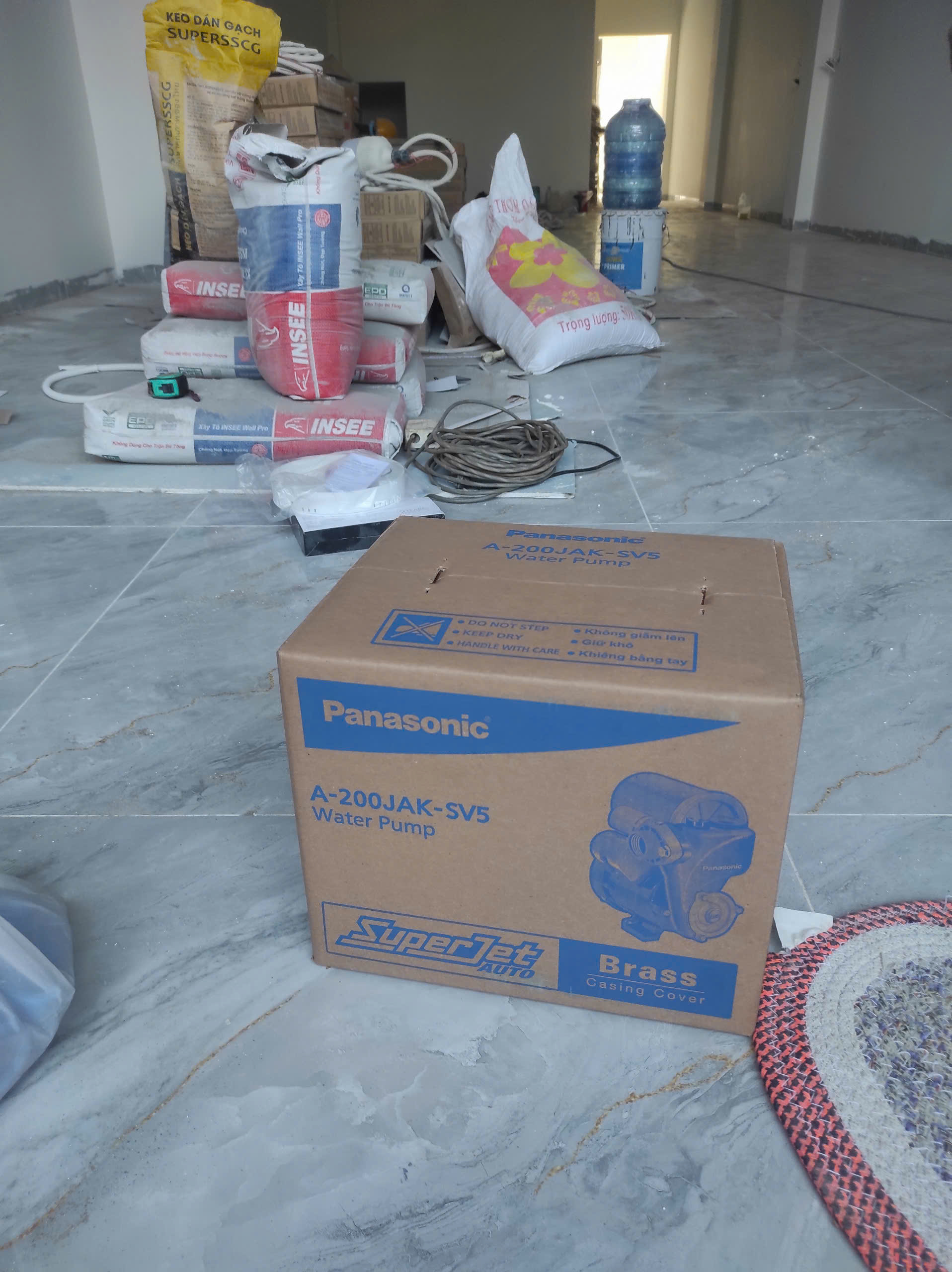 Chào anh. Máy bơm khi giao là hàng nguyên thùng chưa khui chỉ bao gồm 1 cái máy bơm. Phụ kiện lắp đặt bao gồm các đầu ren nhựa, co, nối nhựa, keo... Những vật tư này tùy thuộc vào địa hình lắp ráp của mình ạ. Nhưng vật tư này khi kỹ thuật đến sẽ kê ra cho anh mua giúp ạ. Thông tin đến anh.