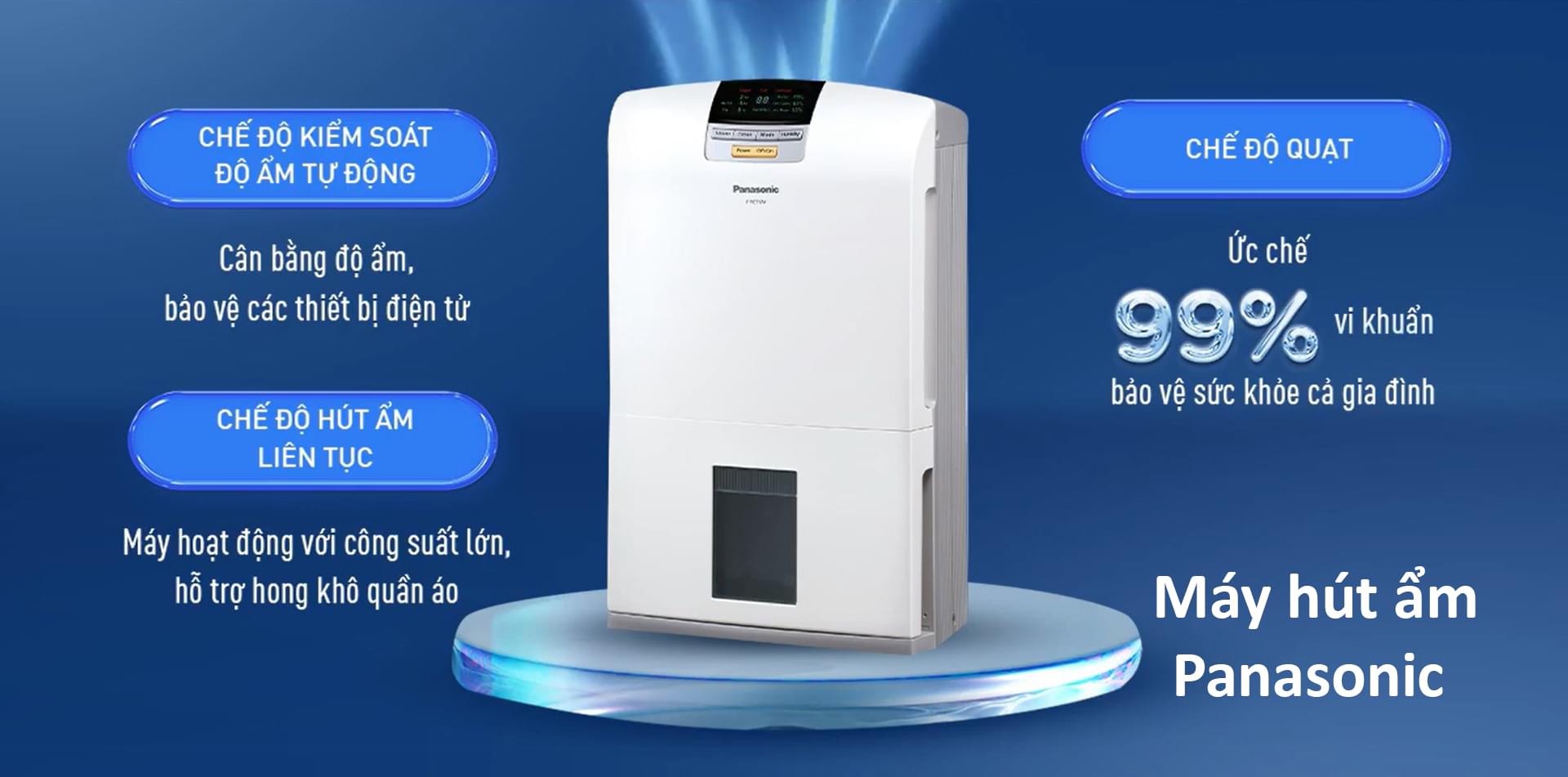 Máy hút ẩm Panasonic là một trong những sản phẩm được ưa chuộng nhiều trong thời gian gần đây. Bởi máy hút ẩm giúp cân bằng ẩm hiệu quả, khử mùi, cũng như hạn chế được sự phát triển của vi khuẩn gây hại, từ đó đảm bảo sức khỏe của các thành viên trong gia đình.