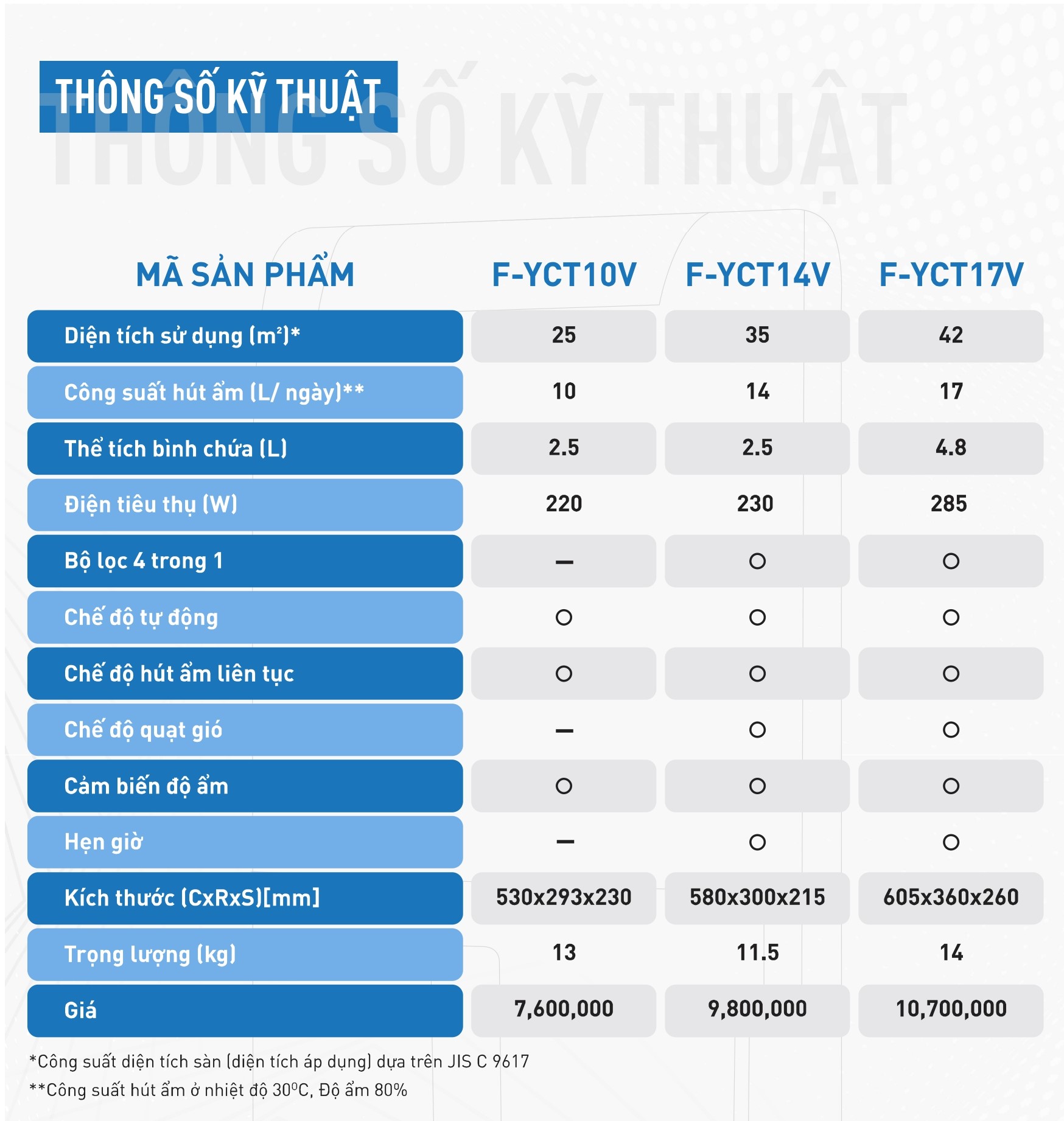 Ưu điểm: Công suất hút ẩm lớn 14l/ngày, bình chứa 2.5l cho thời gian hút ẩm và cân bằng ẩm nhanh chóng. Tích hợp nhiều chế độ: Chế độ kiểm soát độ ẩm tự động với 3 mức ẩm, chế độ hút ẩm liên tục, chế độ hẹn giờ,…tiện ích