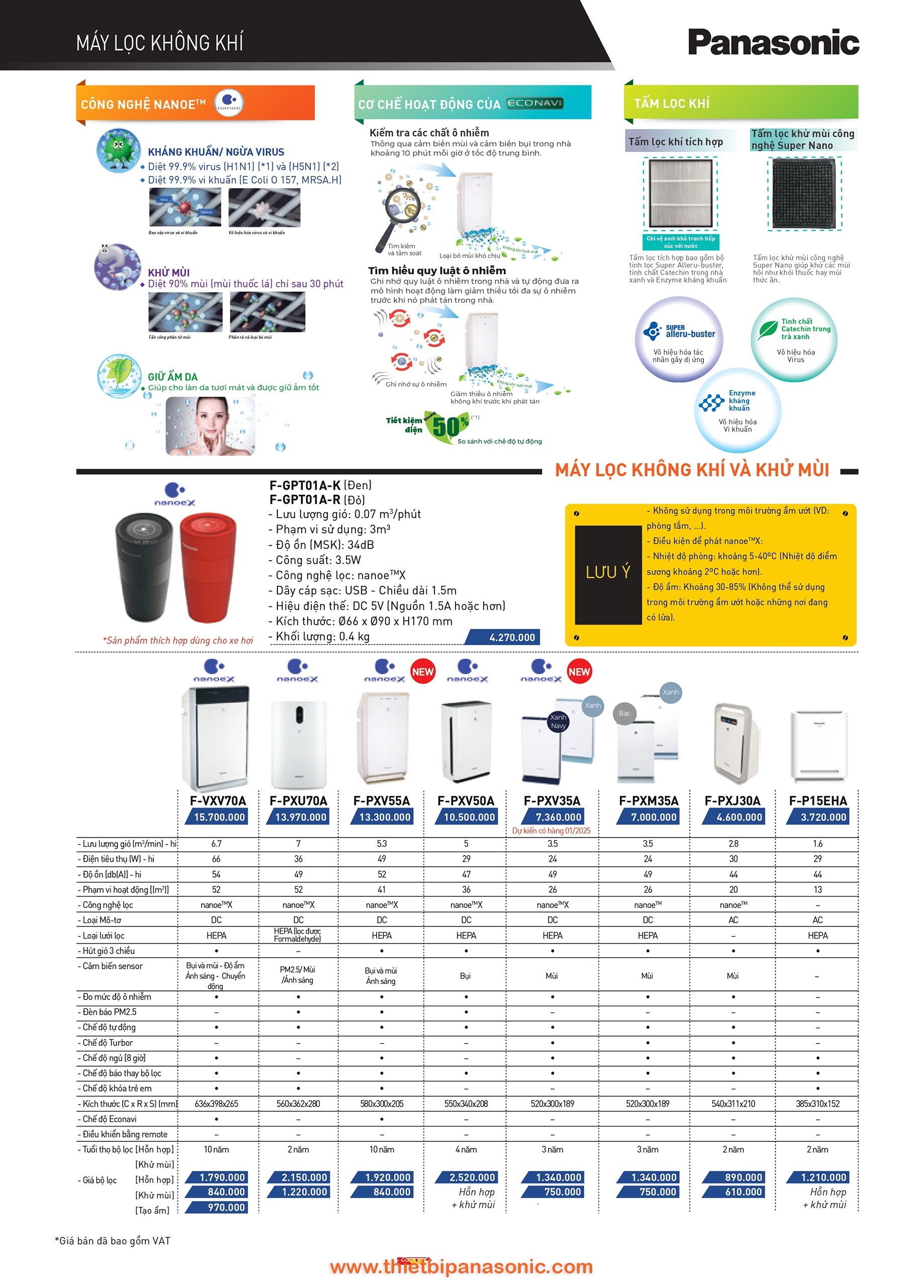 Bảng giá máy lọc không khí Panasonic gồm hơn 10 mẫu máy lọc không khí với công nghệ mới nhất cùng chi tiết thông số kỹ thuật của từng máy để bạn dễ dàng so sánh