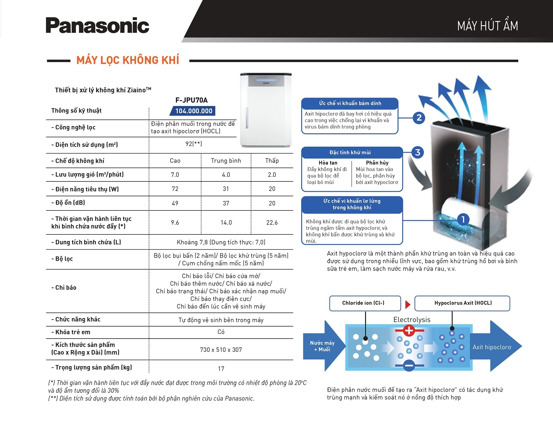 Máy lọc không khí Panasonic là thiết bị gia đình với khả năng lọc sạch bụi bẩn, nấm mốc, vi khuẩn, các chất gây dị ứng, phấn hoa, giúp mang lại bầu không khí trong lành, bảo vệ sức khỏe cho bạn và cả gia đình.