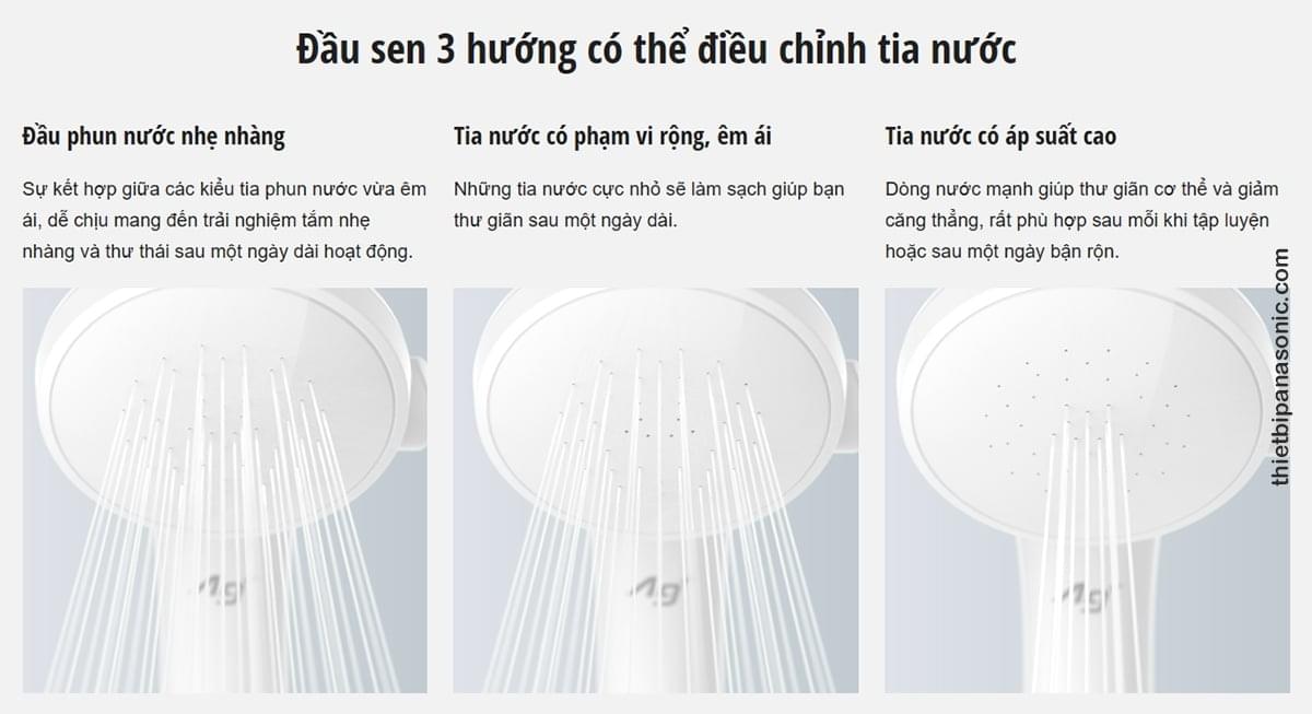 | 15 | Tính năng mang lại sự thoải mái | Vòi sen 3 kiểu phun |