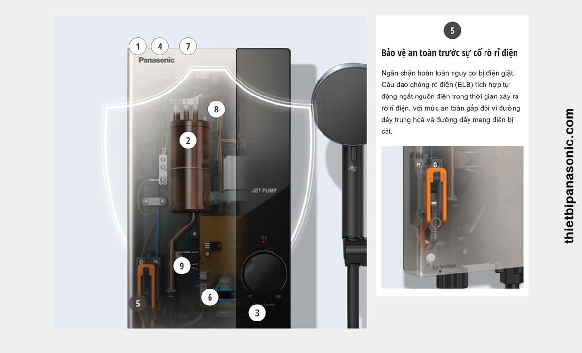 Tính năng an toàn số 5 trên Máy nước nóng Panasonic DH-4UP1VS là bảo vệ an toàn trước sự cố rò điện