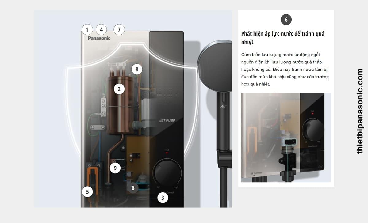 Tính năng an toàn số 6 trên Máy nước nóng Panasonic DH-4UP1VS là phát hiện áp lực nước để tránh quá nhiệt