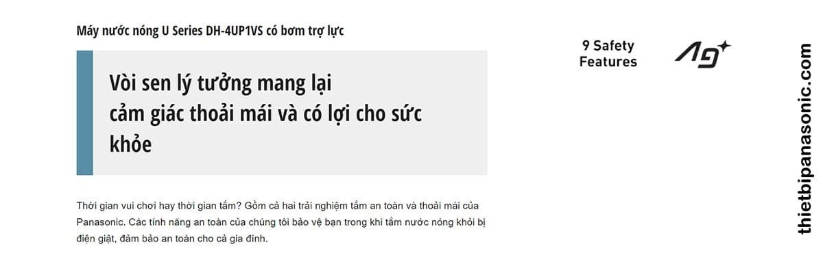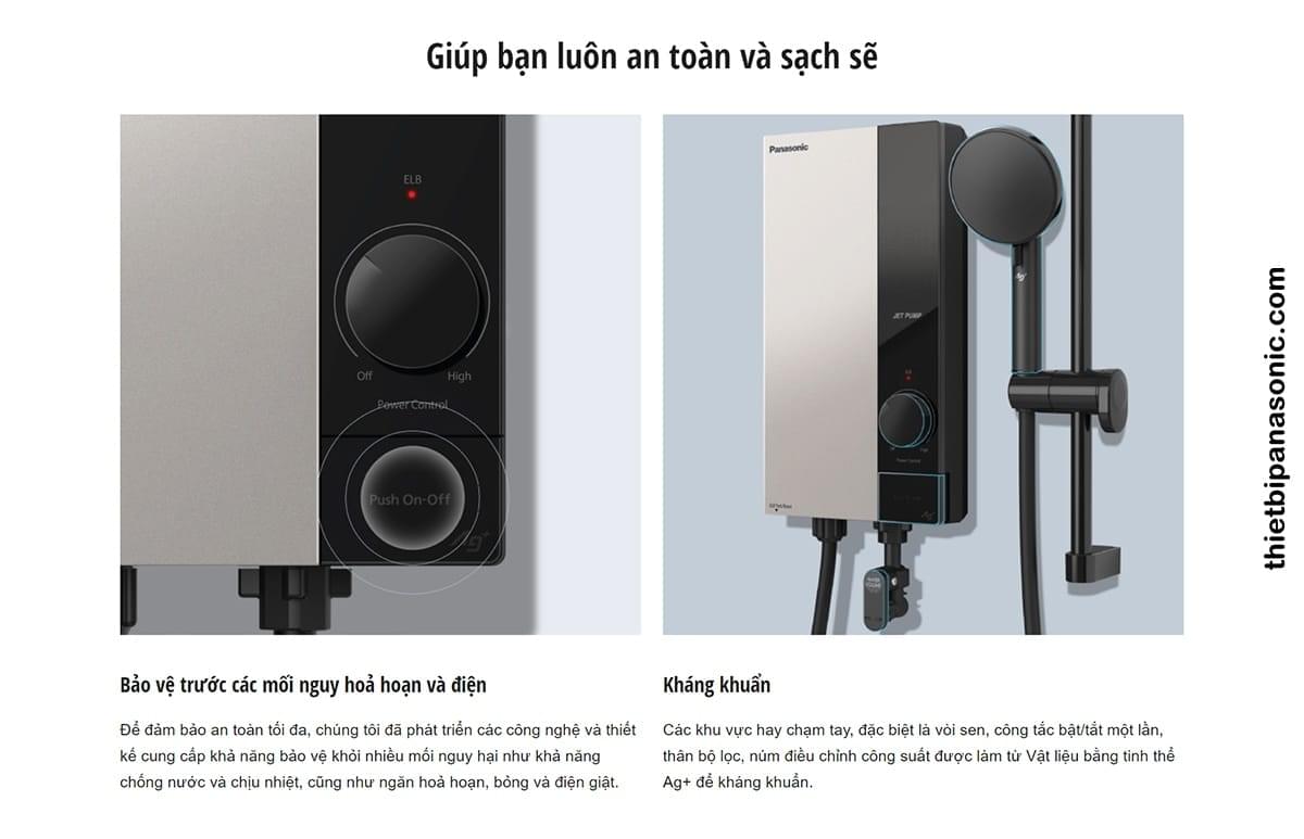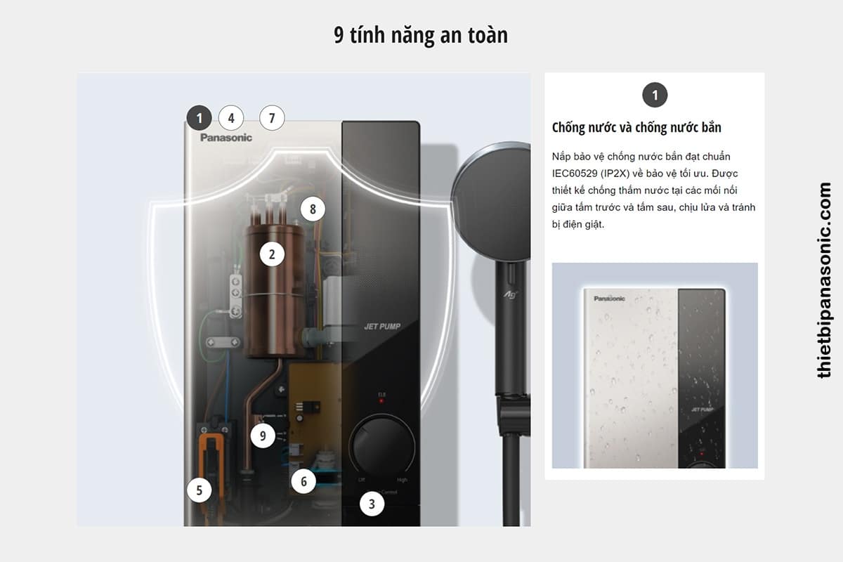 Tính năng an toàn số 1 trên Máy nước nóng Panasonic DH-4UP1VS là chống nước và chống nước bắn