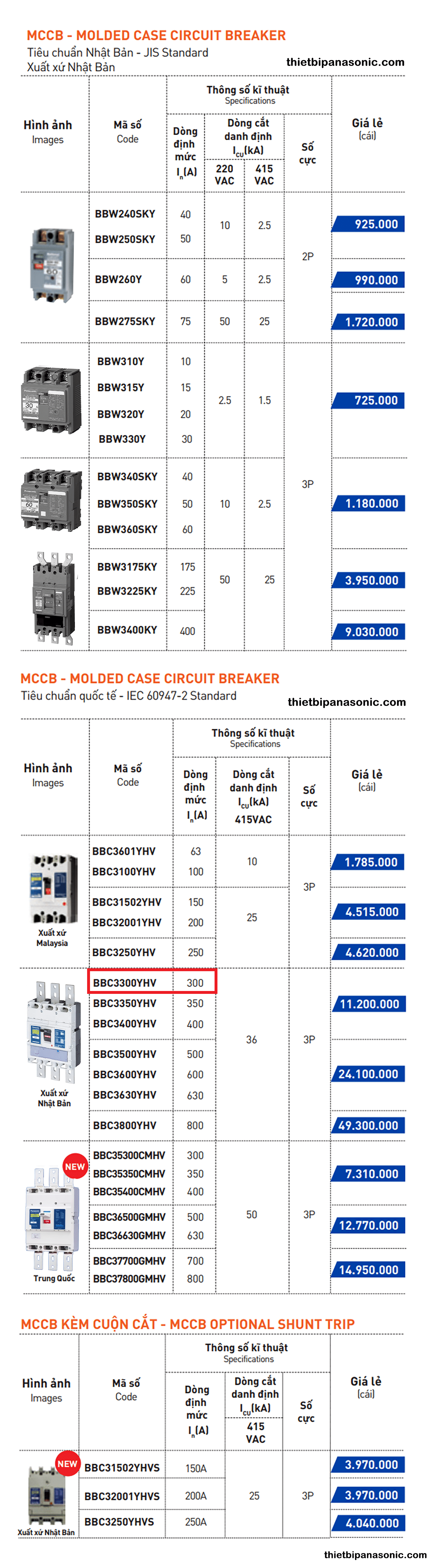 | Bảng giá | Bảng giá CB Panasonic, Bảng giá Panasonic, Giá MCCB |