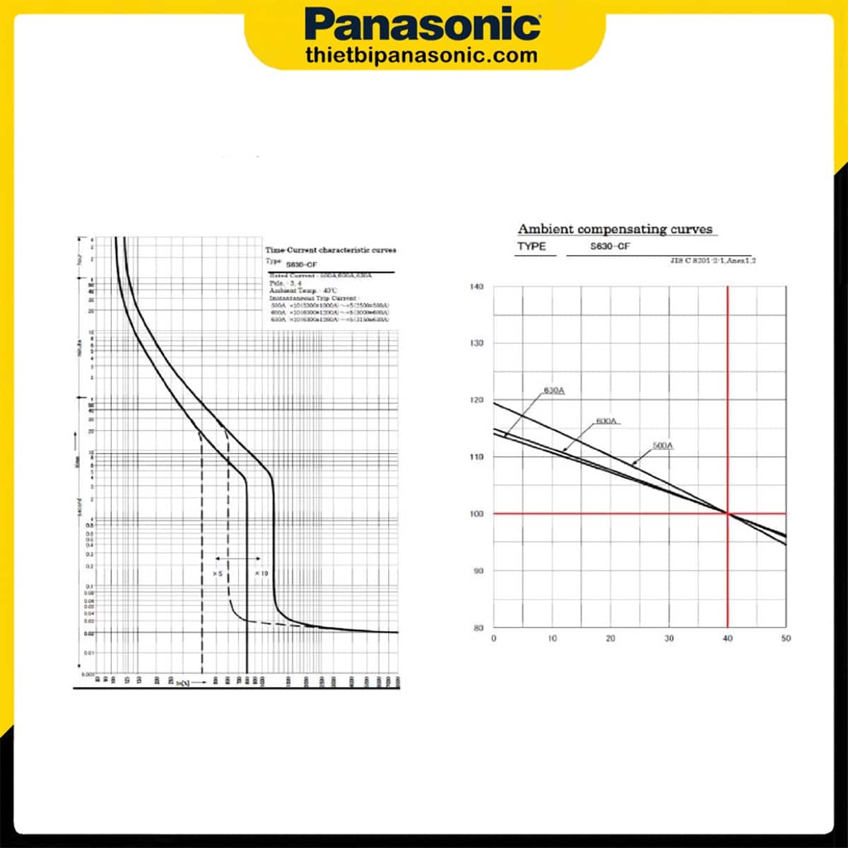 Đường cong đặc tính vận hành và đường cân bù nhiệt độ của MCCB 600A 3P Panasonic BBC3600YHV