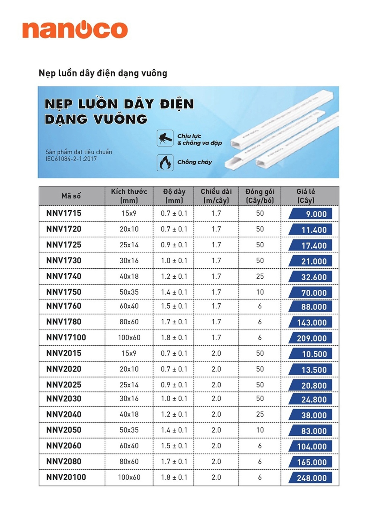 Đèn gương Panasonic, Bếp điện từ Nanoco, Bếp hồng ngoại Nanoco, Bình đun siêu tốc Nanoco, Bình thủy điện Nanoco, Bóng đèn LED Filament Panasonic, Co nối Nanoco, Đầu giảm Nanoco, Đầu nối ống mềm Nanoco, Đầu và khớp nối ren Nanoco, Dây cáp đồng trục Nanoco, Dây cáp mạng CAT5e Nanoco, Dây cáp mạng CAT6 Nanoco, Dây điện thoại và báo cháy Nanoco, Đèn bắt muỗi Nanoco, Đèn gắn tường Nanoco, Đèn LED bán nguyệt Nanoco, Đèn LED dây Nanoco, Đèn LED dây Panasonic, Đèn LED khẩn cấp Nanoco, Đèn LED Linear, Đèn LED Panel Nanoco, Đèn Pin đội đầu Nanoco, Đèn thoát hiểm Exit Nanoco, Đèn tuýp LED Nanoco, Hộp âm Hộp nổi Nanoco, Hộp nối 1 ngã Nanoco, Hộp nối 2 ngã Nanoco, Hộp nối 3 ngã Nanoco, Hộp nối 4 ngã Nanoco, Hộp nối dây Nanoco, Kẹp đỡ ống luồn dây điện chữ C Nanoco, Kẹp ống Omega Nanoco, Khớp nối trơn PVC Nanoco, Lò xo uốn ống Nanoco, Mặt thiết bị Nanoco, Máy hút ẩm Nanoco, Máy sưởi dầu Nanoco, Nắp đậy hộp nối tròn Nanoco, Nẹp luồn dây điện vuông Nanoco, Nồi chảo Nanoco, Ổ cắm Phích cắm đơn Nanoco, Ống luồn dây điện tròn Nanoco, Ống ruột gà HDPE Nanoco, Ống ruột gà luồn dây điện xoắn PVC Nanoco, Phụ kiện dùng cho HB Nanoco, Quạt hút sưởi Nanoco, T nối ống luồn dây điện điện Nanoco, Tủ sấy quần áo NanocoZDemo (Vui lòng Xem Catalogue bên dưới)