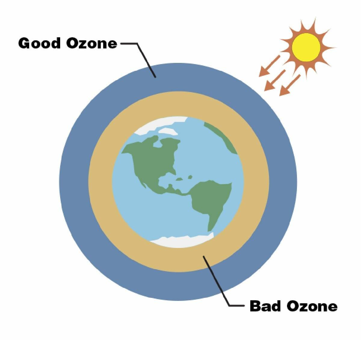 Ozone cao trong khí quyển của chúng ta là một điều tốt. Nó giúp ngăn chặn năng lượng có hại từ Mặt trời, được gọi là bức xạ. Nhưng, khi ozone gần mặt đất hơn, nó có thể thực sự có hại cho sức khỏe của chúng ta. Ozone mặt đất được tạo ra khi ánh sáng mặt trời phản ứng với một số hóa chất nhất định đến từ các nguồn đốt nhiên liệu hóa thạch, chẳng hạn như nhà máy hoặc khí thải xe hơi.