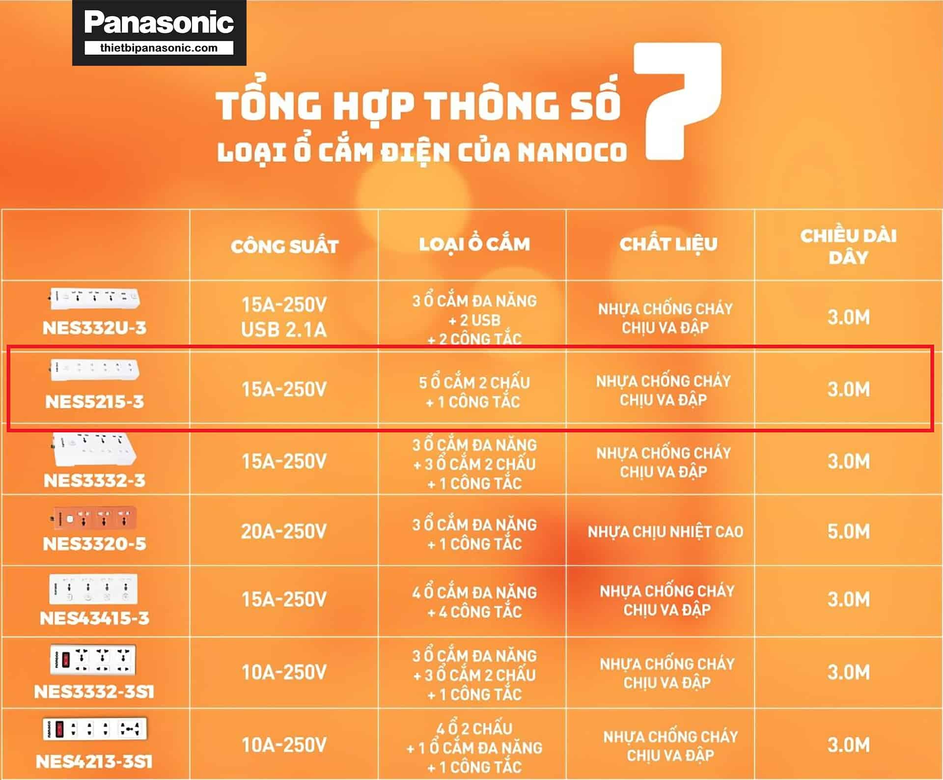 So sánh ổ cắm có dây NES5215-3 với các loại khác của Nanoco
