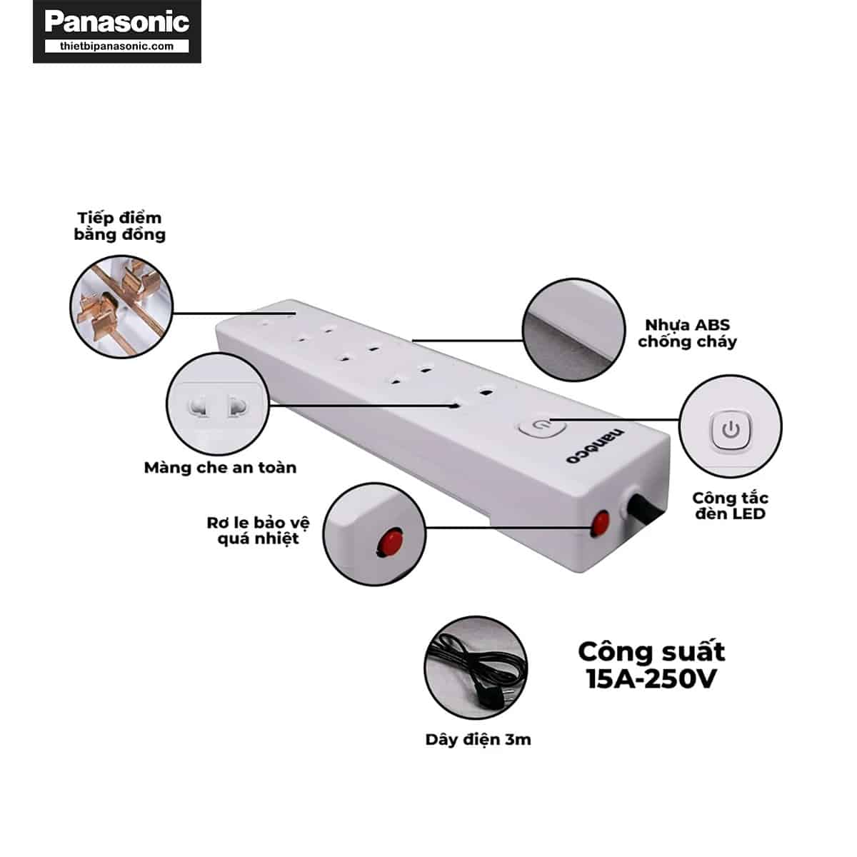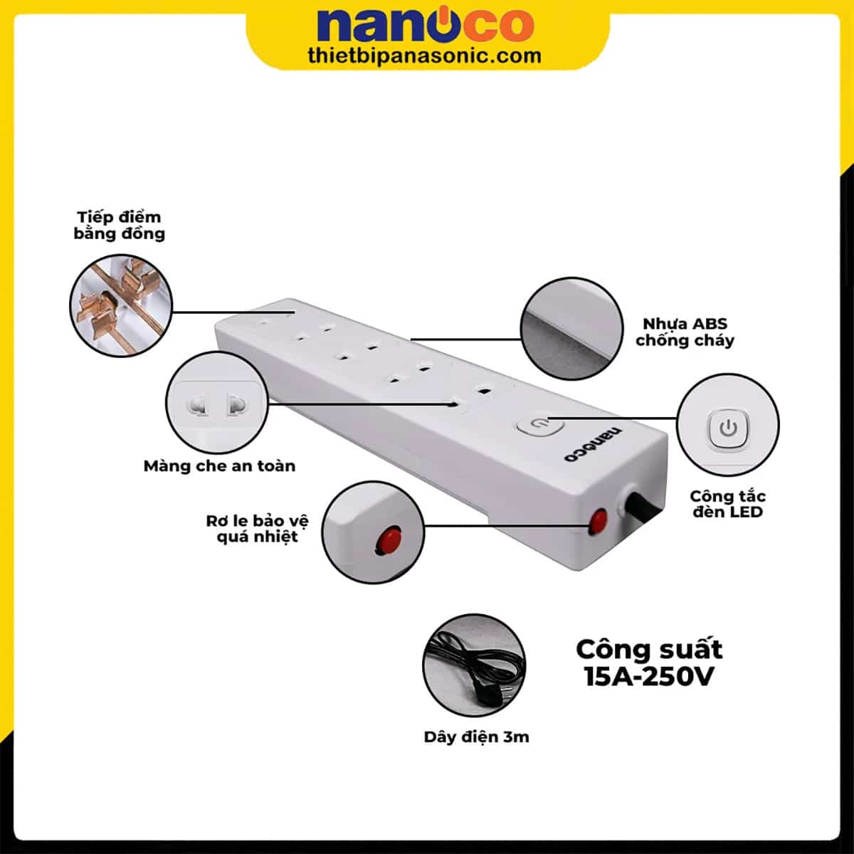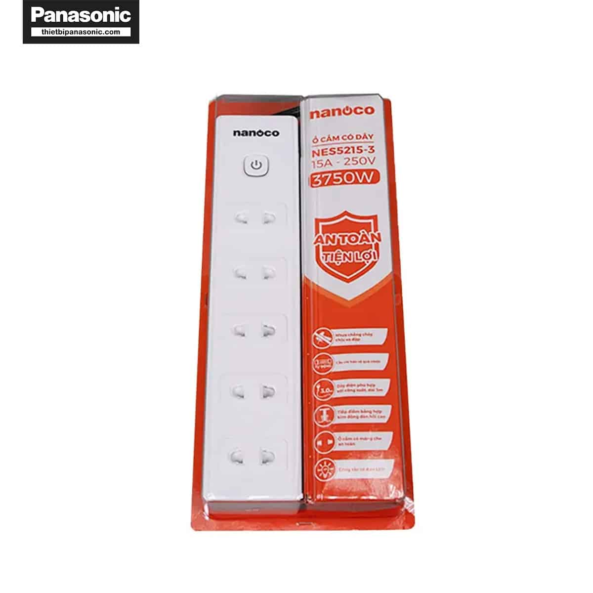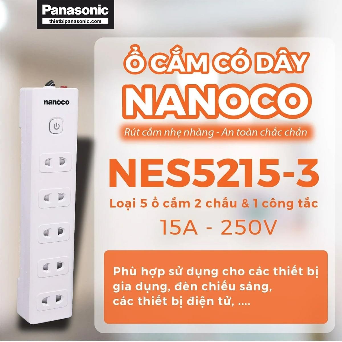 Một số đặc điểm nổi bật của ổ cắm có dây Nanoco NES5215-3 có thể kể đến như: