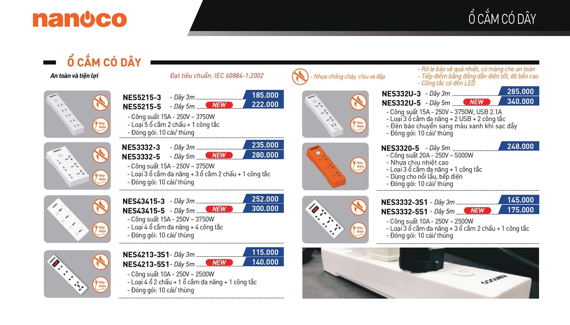 Catalogue bảng giá ổ cắm có dây Nanoco