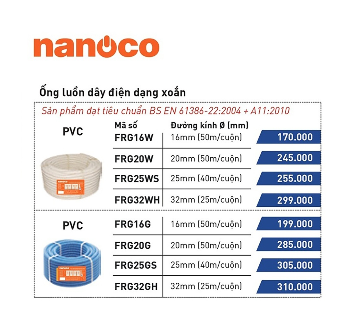 Ống ruột gà luồn dây điện xoắn PVC Nanoco