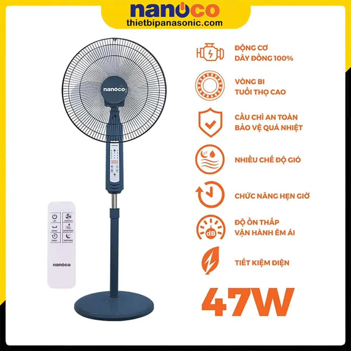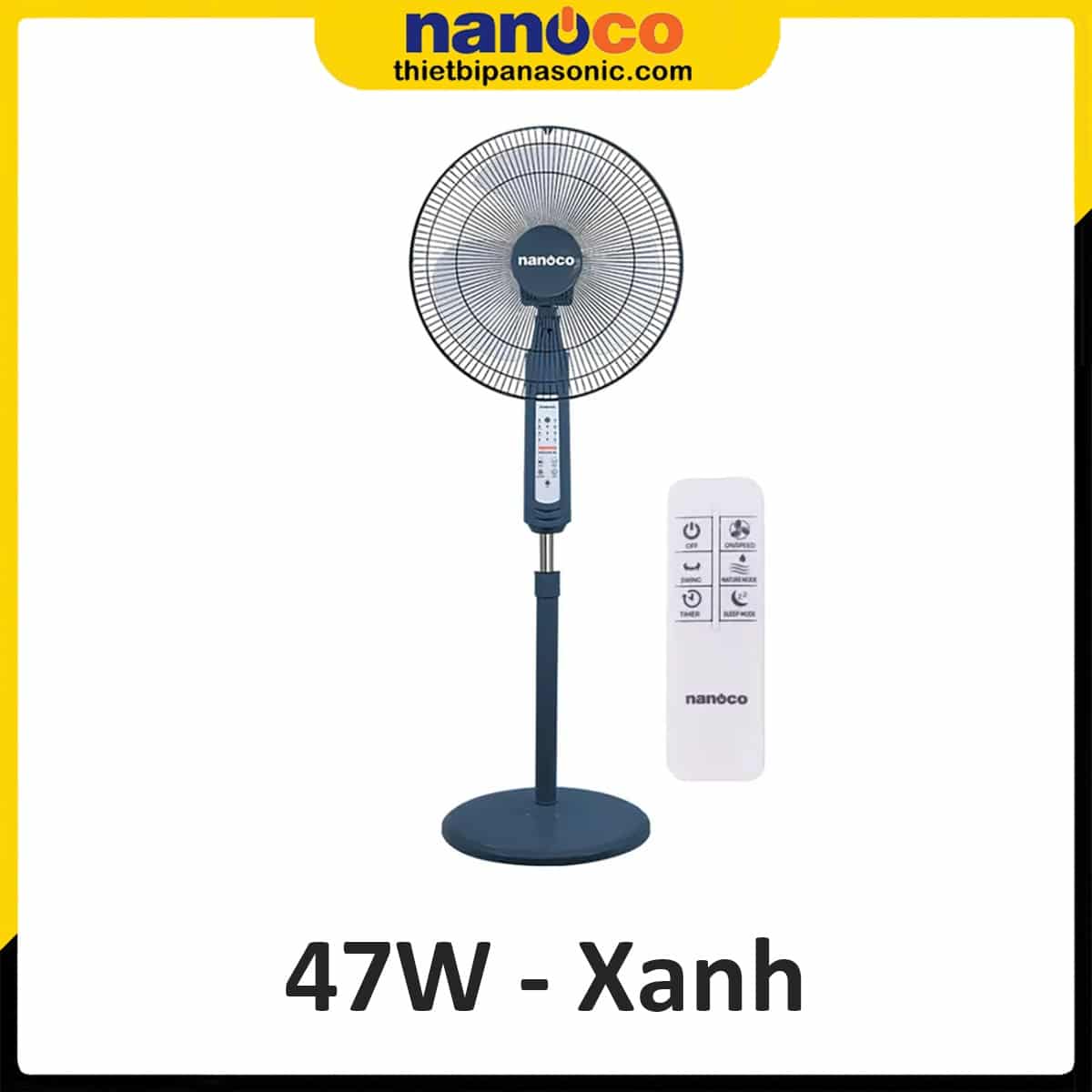 Quạt đứng Nanoco NSF1602G-RCB Màu Xanh, 47W, Remote